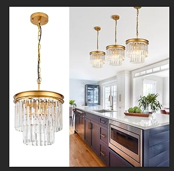 11.8" Gold Crystal Pendant Light, Modern 3-Light Chandelier 2-Tier Luxury Crystal Hanging Ceiling Light Fixture for Hallway Dining Room Living Room Bedroom Kitchen Island