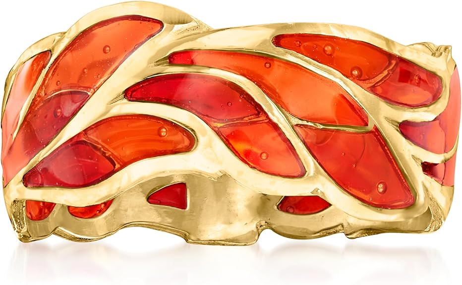 Ross-Simons Italian Red Enamel Leaf Ring in 14kt Yellow Gold