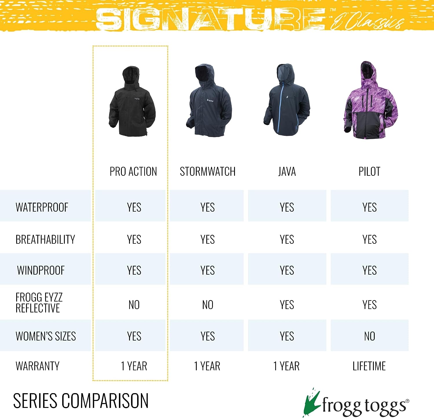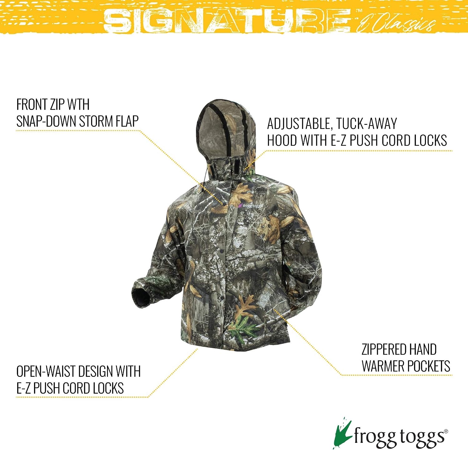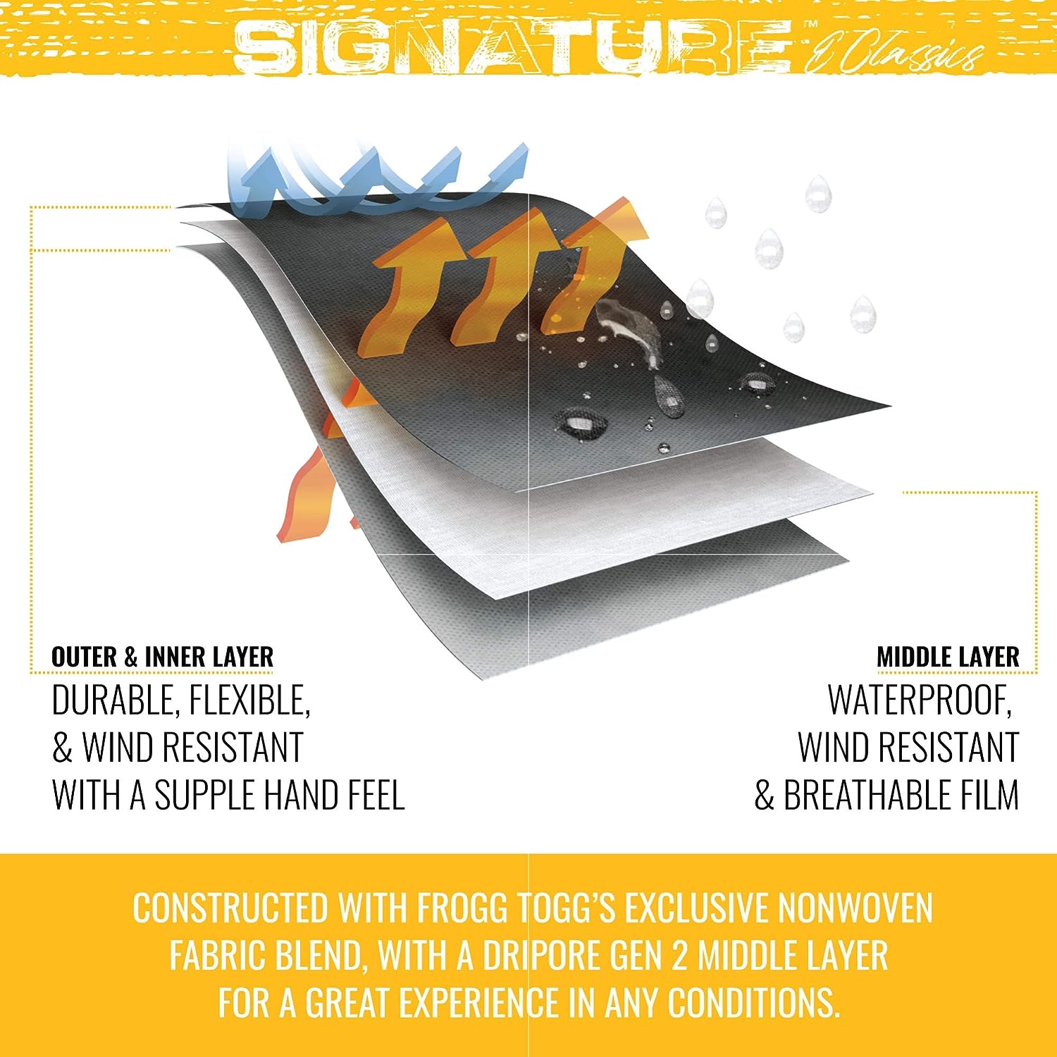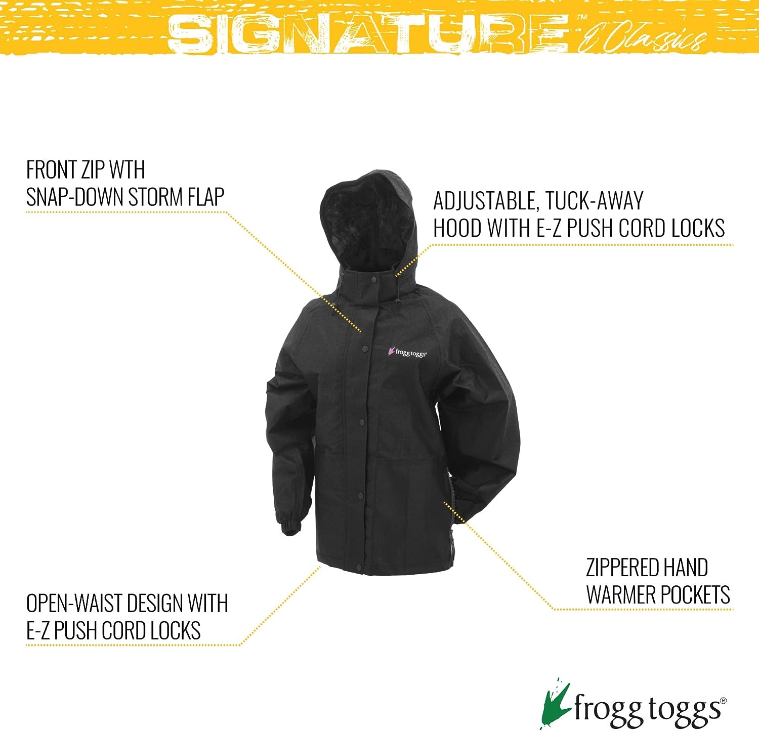 The Frogg Toggs Pro Action Jacket is made with Frogg Toggs’ non-woven Classic fabric with Dri-Pore Gen 2 performance-matched waterproof/breathable technology with fully taped and sealed seams. The new open-waist design is provided for greater versatility, performance and comfort. E-Z push hood and hem cord locks ensure a perfectly tailored fit. The jacket also features molded polymer zippers and an adjustable, tuck-away hood. The front zip with snap-down storm flap keeps water out, and zippered hand-warmer pockets are added for comfort and storage.