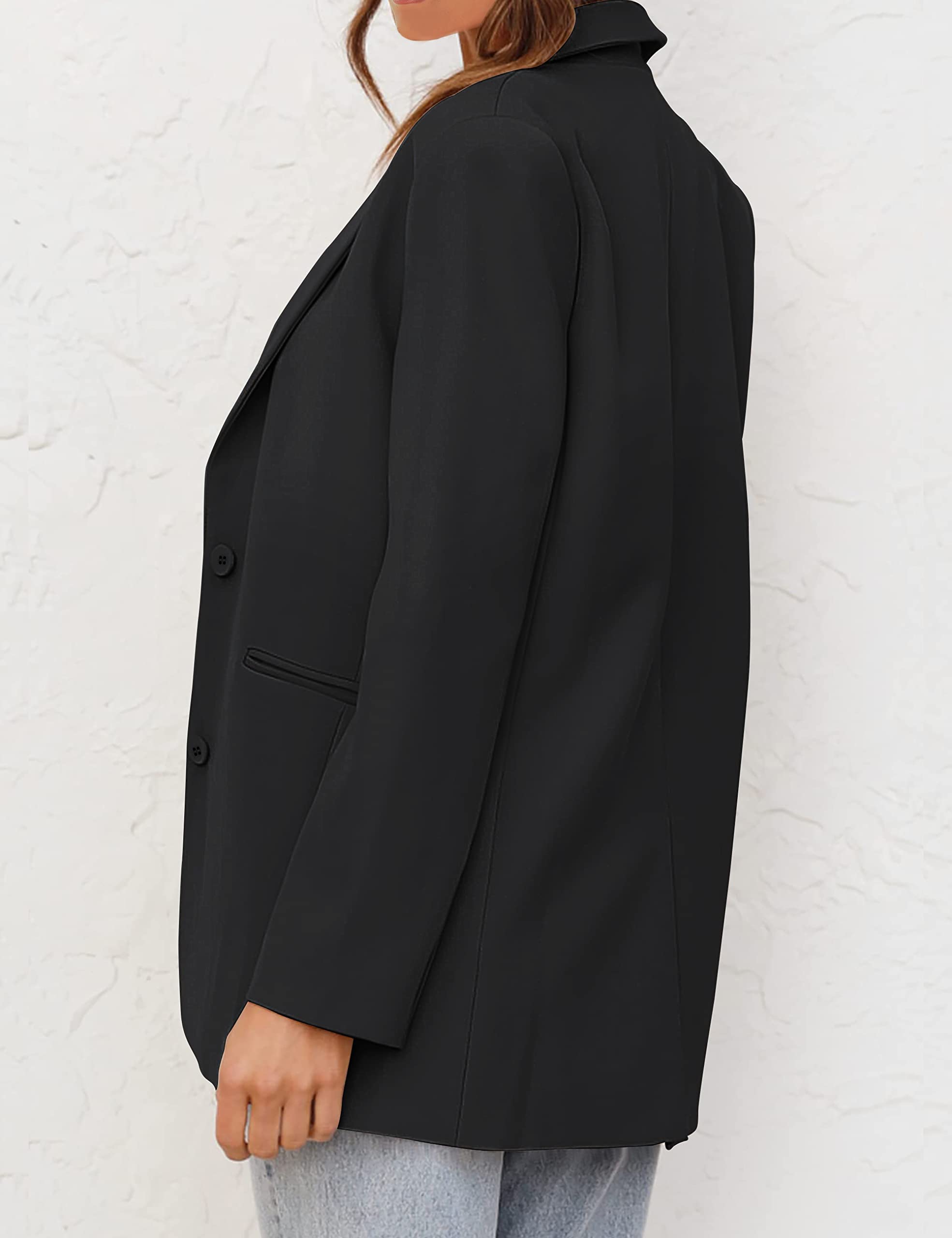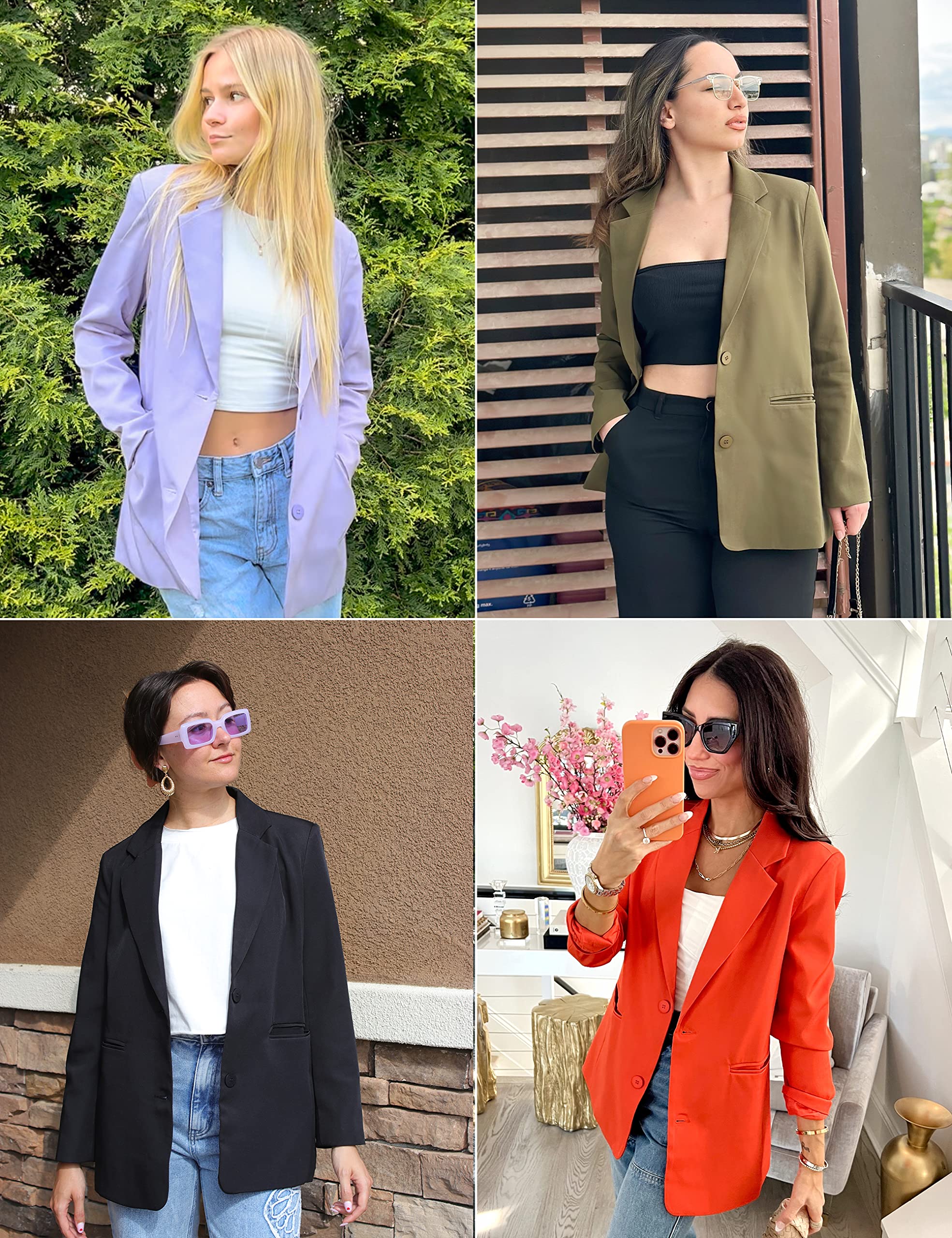 • Unique design: Long sleeve, notch lapel open front, two functional pockets, fully lined, solid color, two front button design, boyfriend style, casual fit.