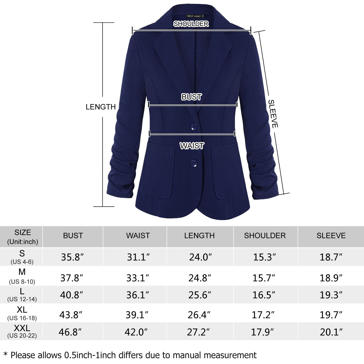 • Womens Blazer Feature: 3/4 Ruched Sleeve, Partially lining, Notched Lapel, Lightweight Buttons Front Jacket, Slim Fit, Solid Color & Floral Print Knit Blazer Jacket