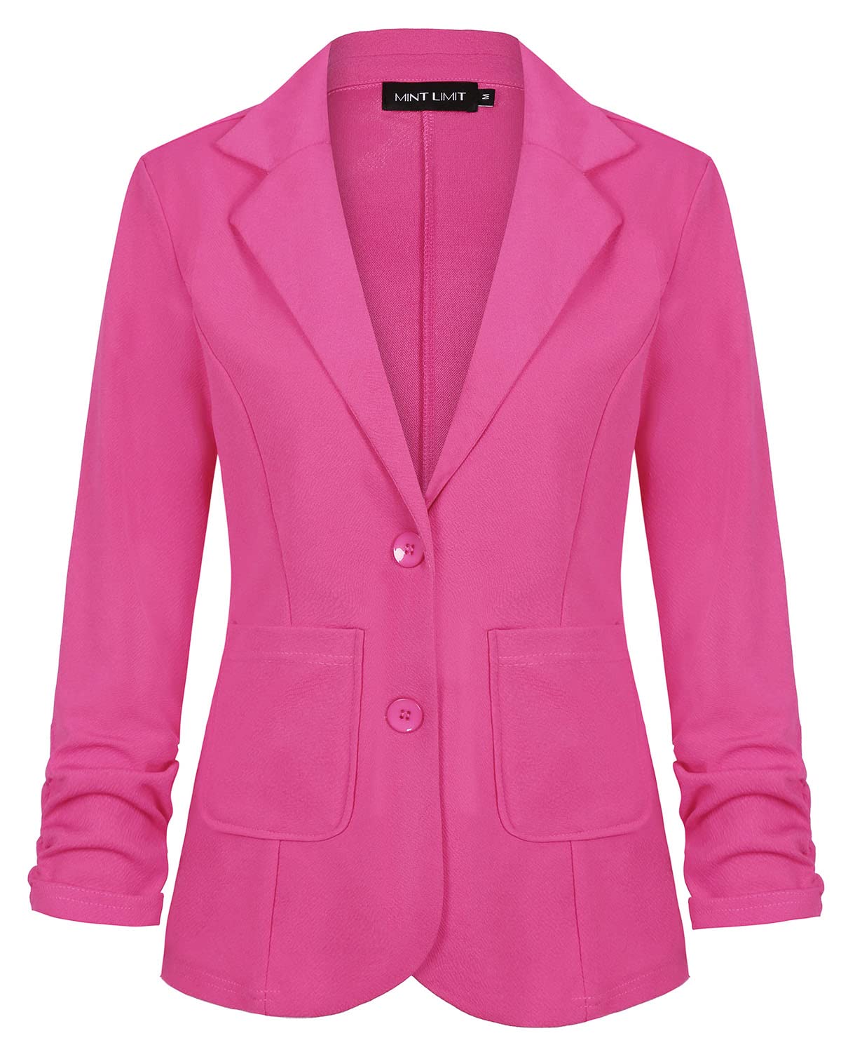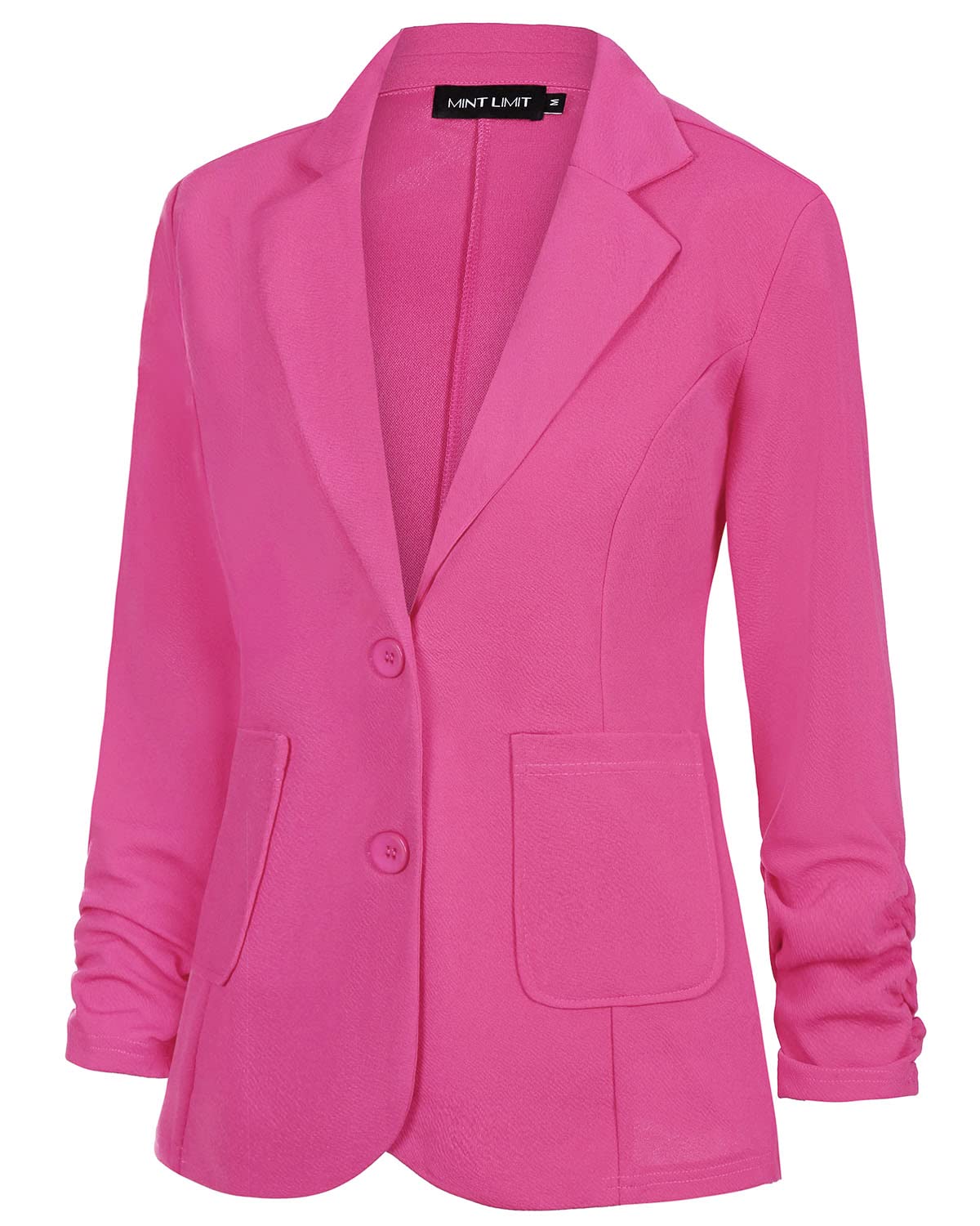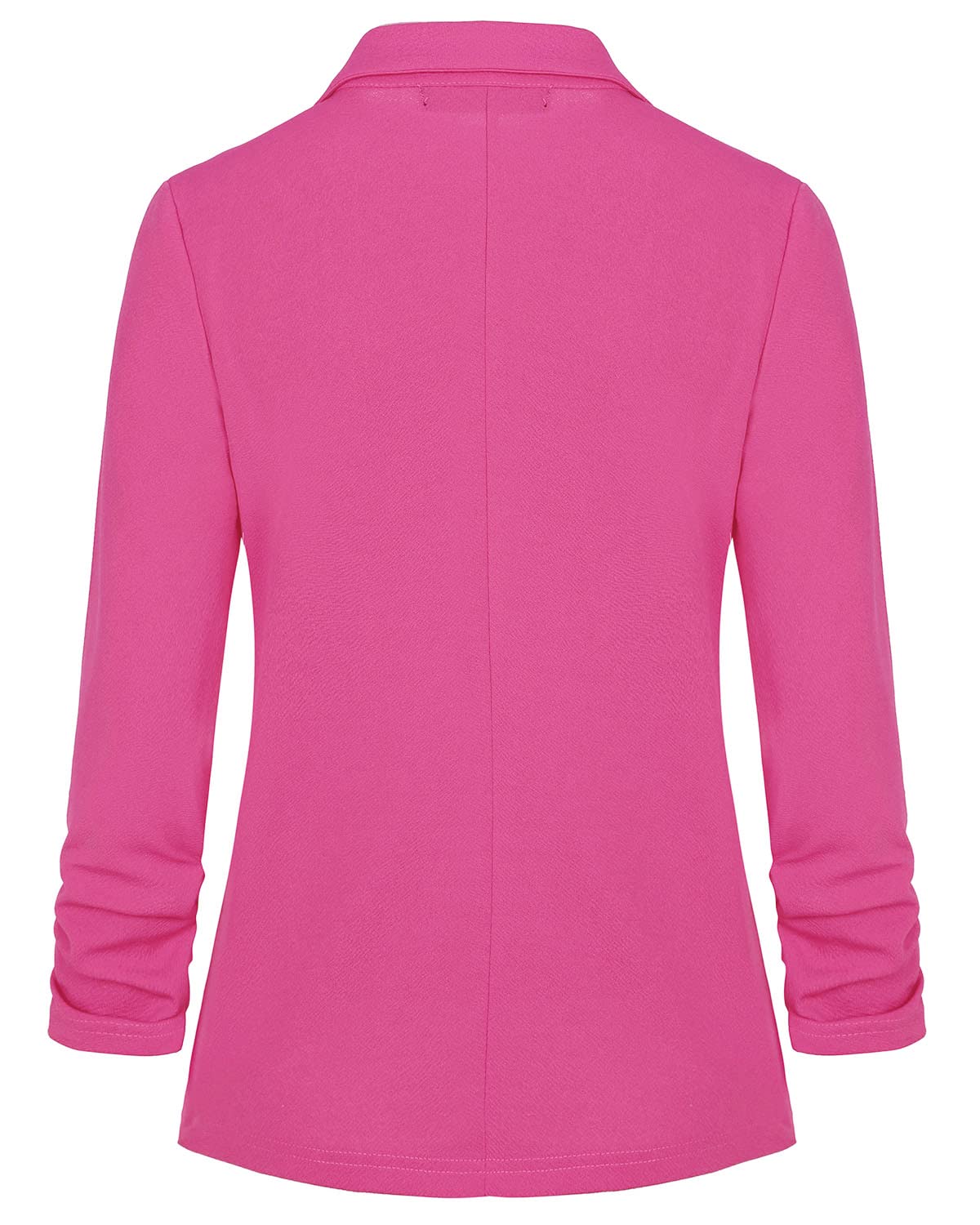 Unifizz Womens Casual Work Ruched 3/4 Sleeve Buttons Blazers Notched Lapel Lightweight Jackets with Plus Size #Hot Pink - Size XL#