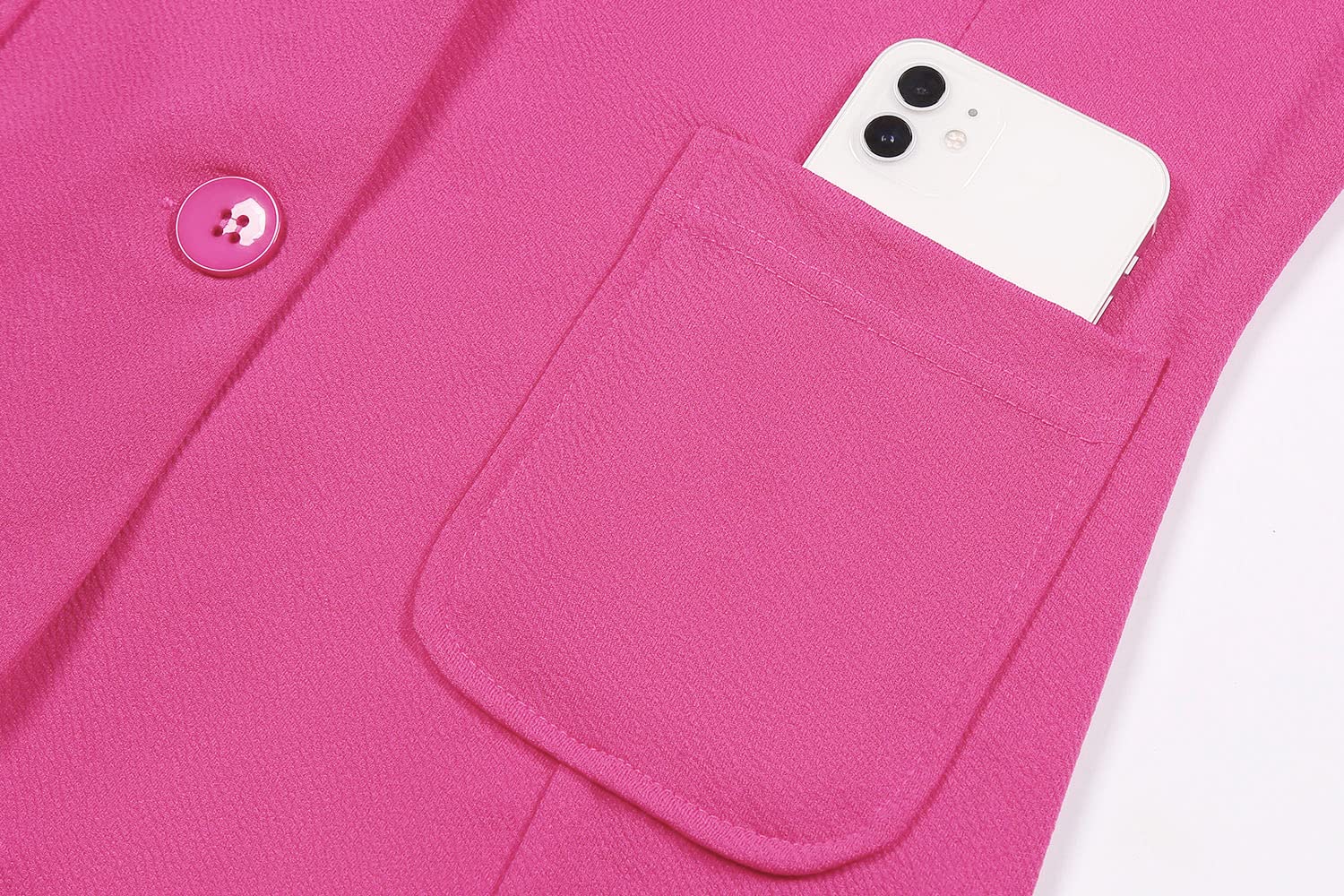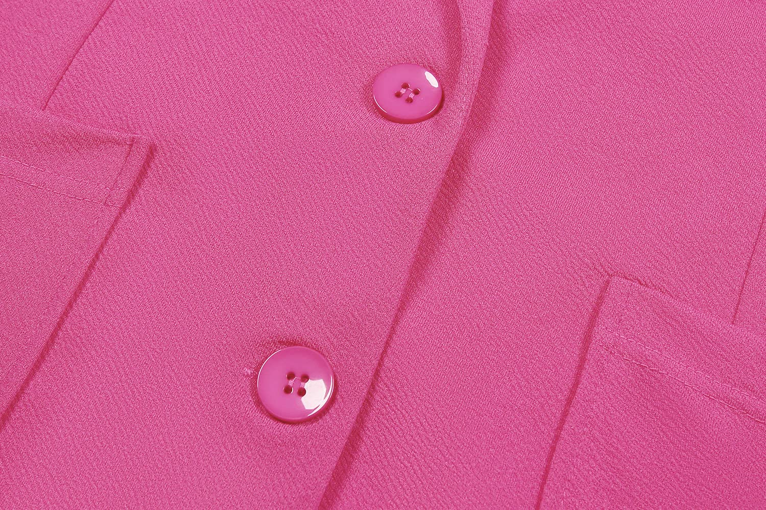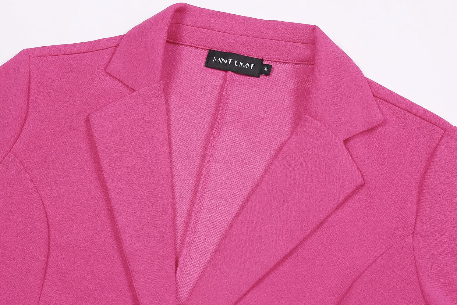 Unifizz Womens Casual Work Ruched 3/4 Sleeve Buttons Blazers Notched Lapel Lightweight Jackets with Plus Size #Hot Pink - Size XL#