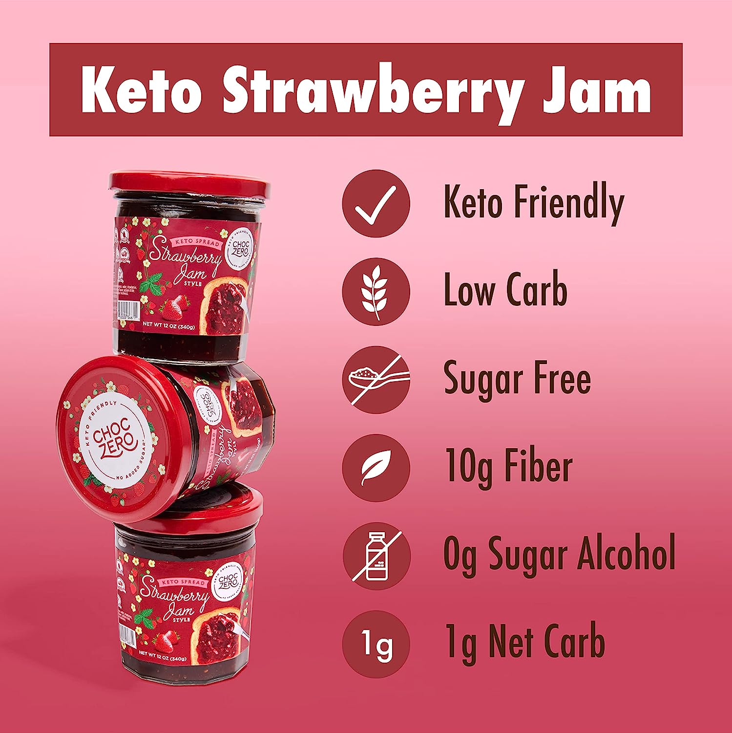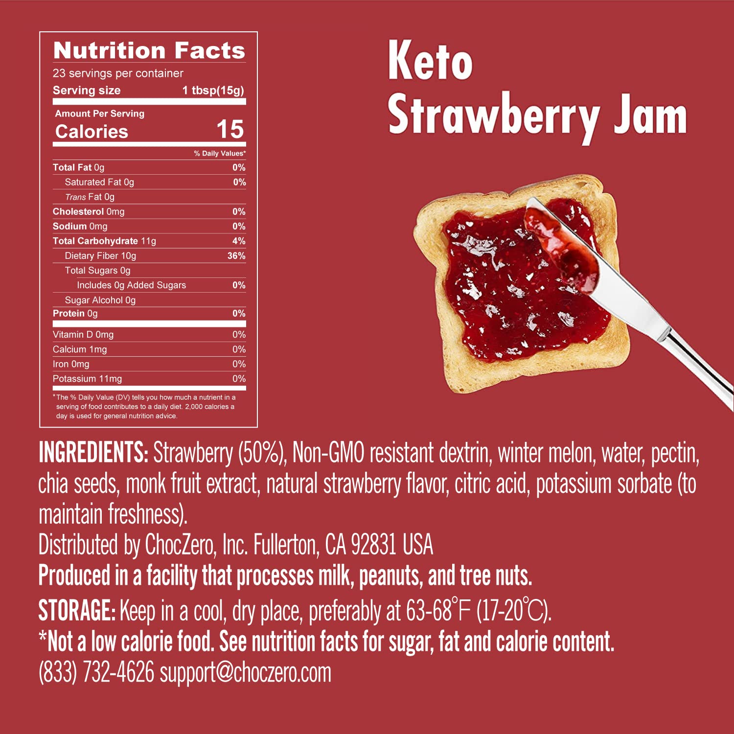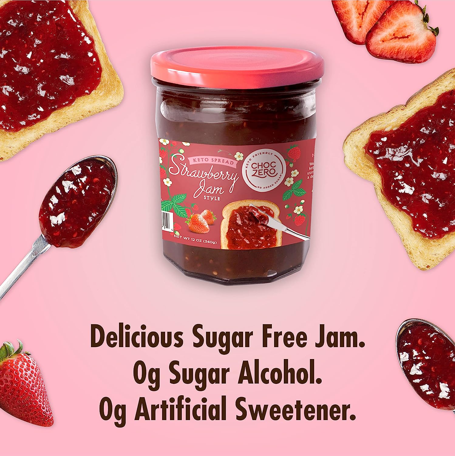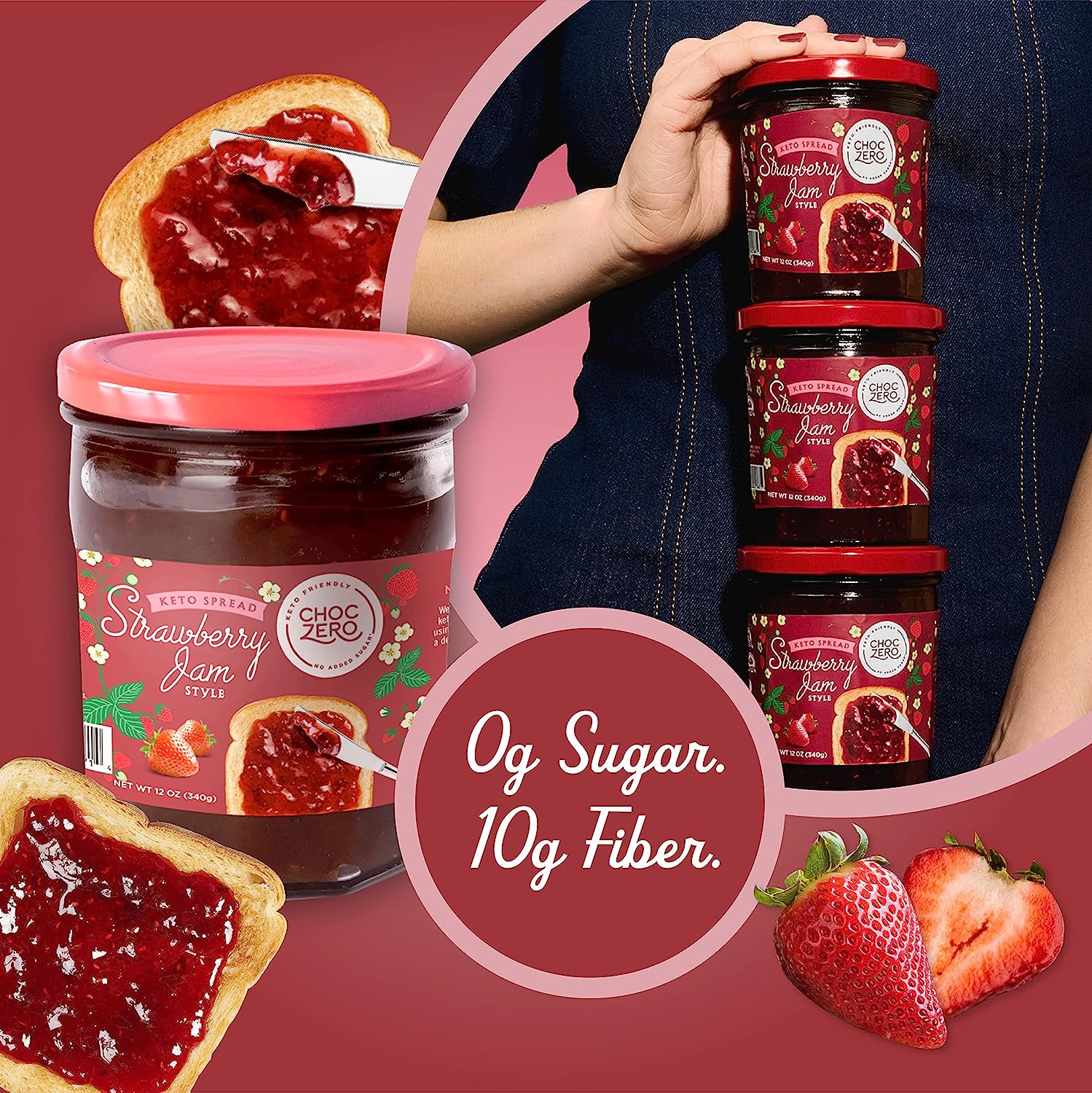 ChocZero Keto Strawberry Jam Preserves - No Sugar Added, Low Carb, Keto Friendly, Fruit Spread Alternative, Perfect Jelly for Bread, Gluten Free, Naturally Sweetened with Monk Fruit (1 jar, 12 oz)