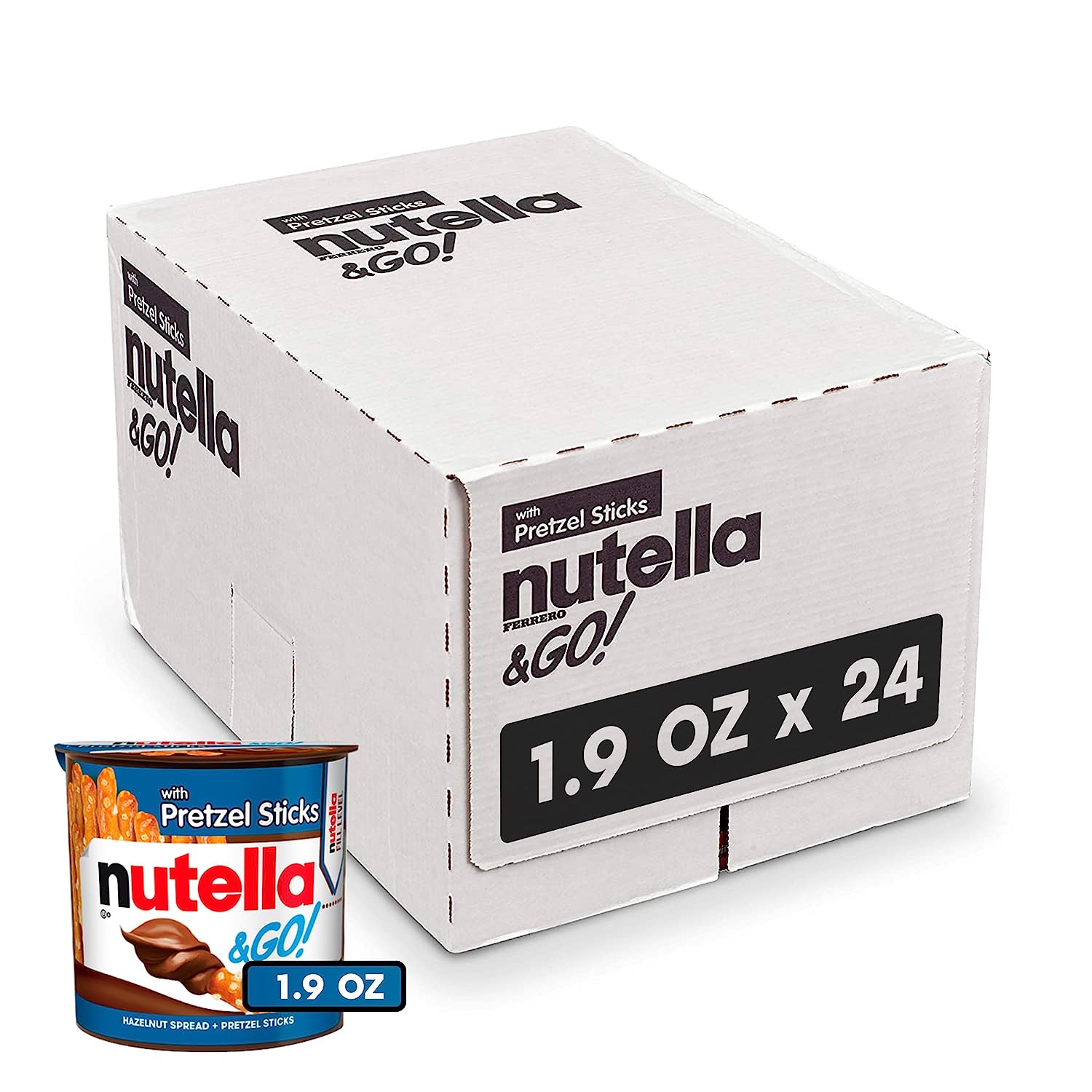 Nutella & GO! Hazelnut and Cocoa Spread with Pretzel Sticks, Snack Pack, 1.9 oz, Bulk 24 Pack