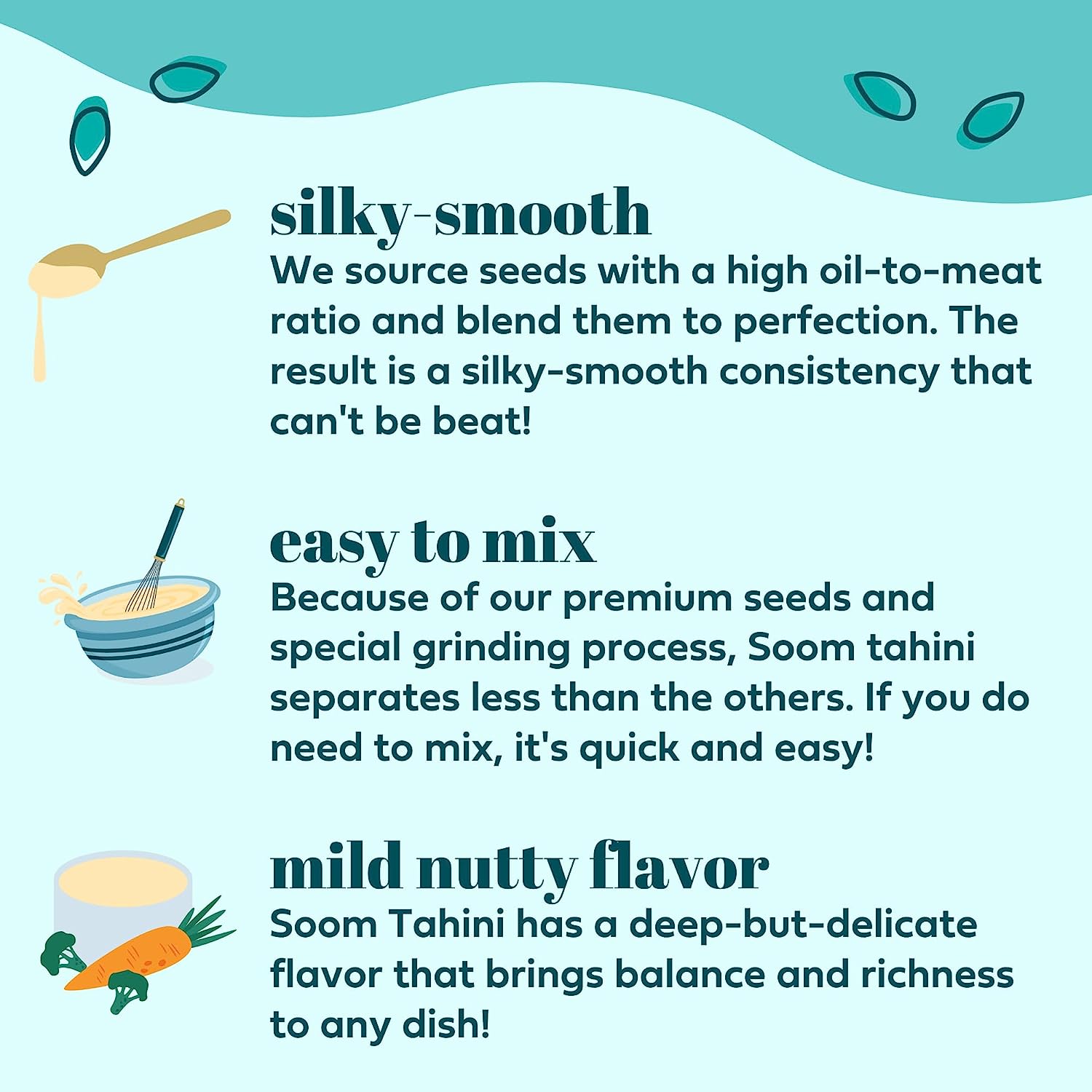 • PRESSED FROM THE BEST: The secret is in the seeds! Soom only uses the highest quality, premium sesame seeds that are roasted and ground to perfection.