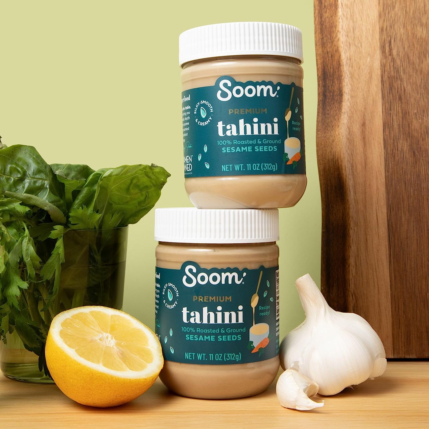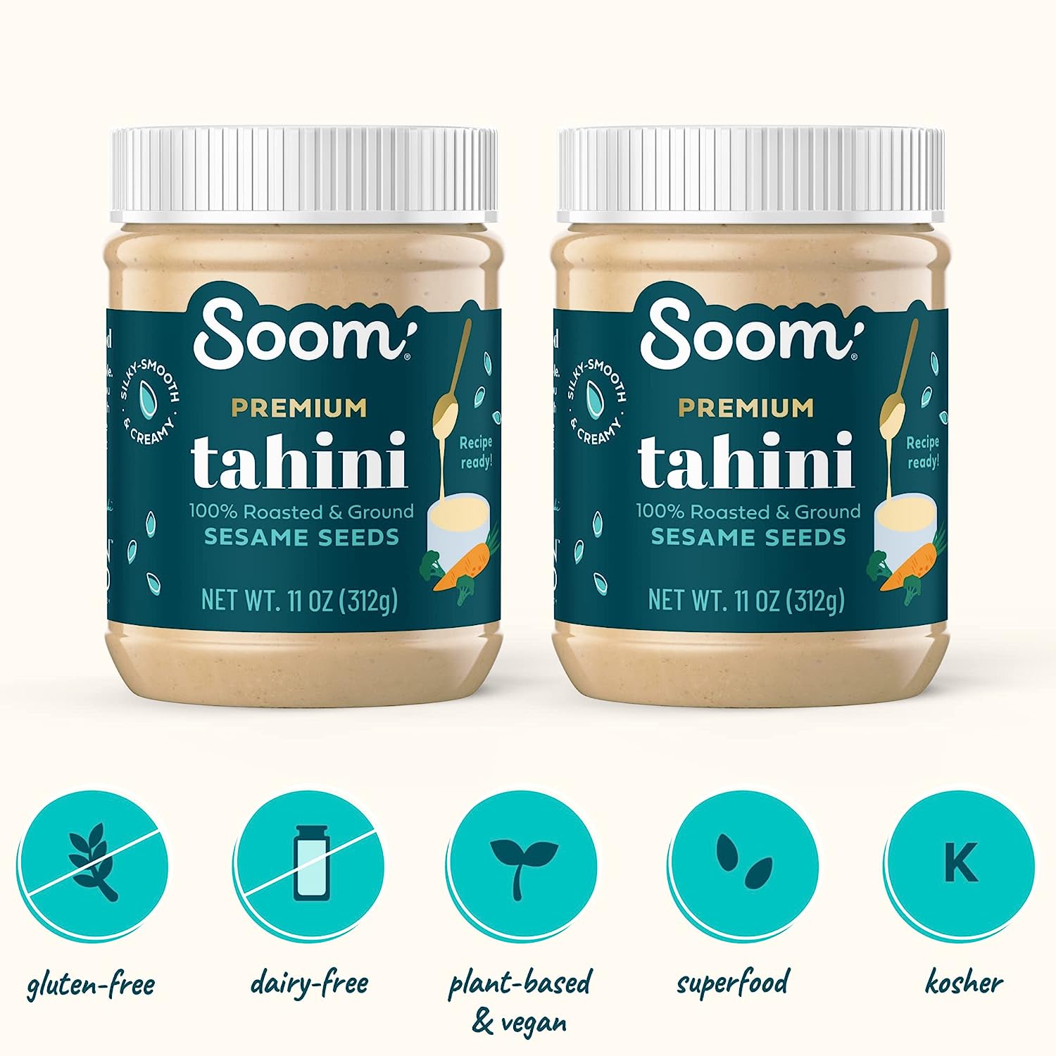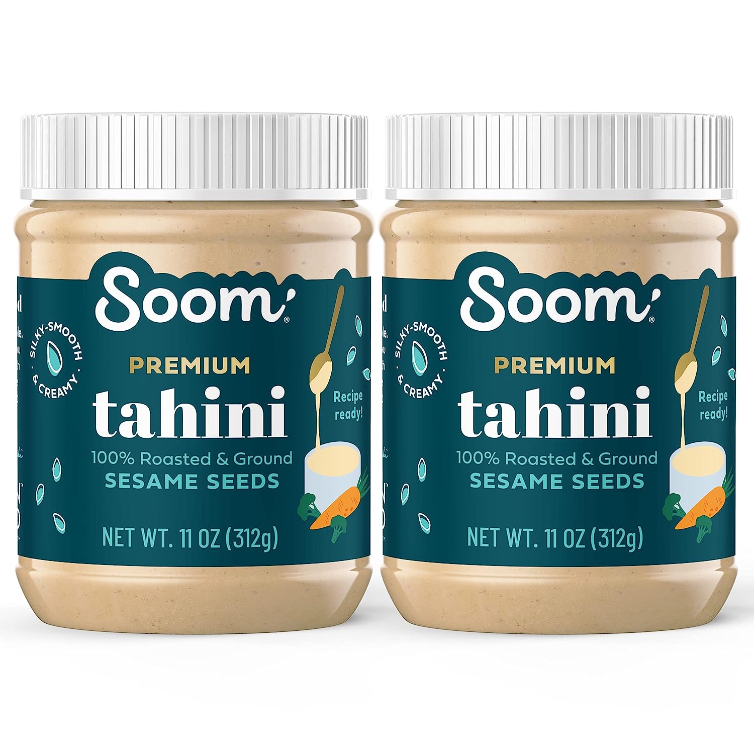 Soom Foods Ground Sesame Tahini Paste 11oz (2 Pack) | Silky Smooth Texture in Hummus, Dips, Salad Dressings | Vegan, Nut-Free, Gluten-Free, Kosher, Keto, Paleo, Whole30