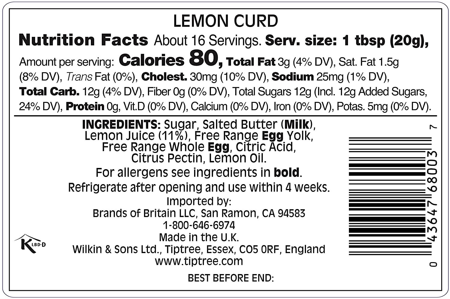 Tiptree Lemon Curd is made from eggs, butter and the finest lemons from Sicily. You’ll love the flavour and texture of this uniquely British concoction. It has a distinctively deep lemon flavour with a smooth and light texture.