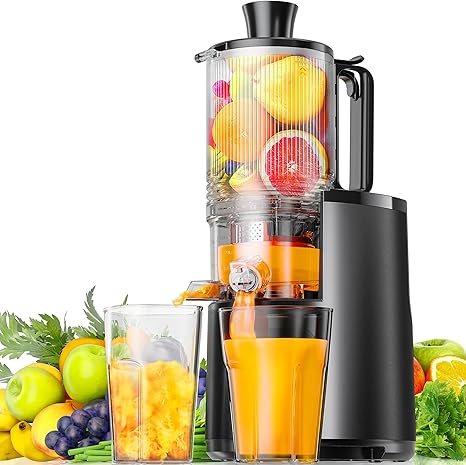 Cold Press Juicer, EUHOMY 5.5" Extra Large Feed Chute Slow Masticating Juicer, 250W Juicer Machines, 99.6% High Juice Yield, Easy to clean, Reverse Function, for Whole Vegetables & Fruits. Black