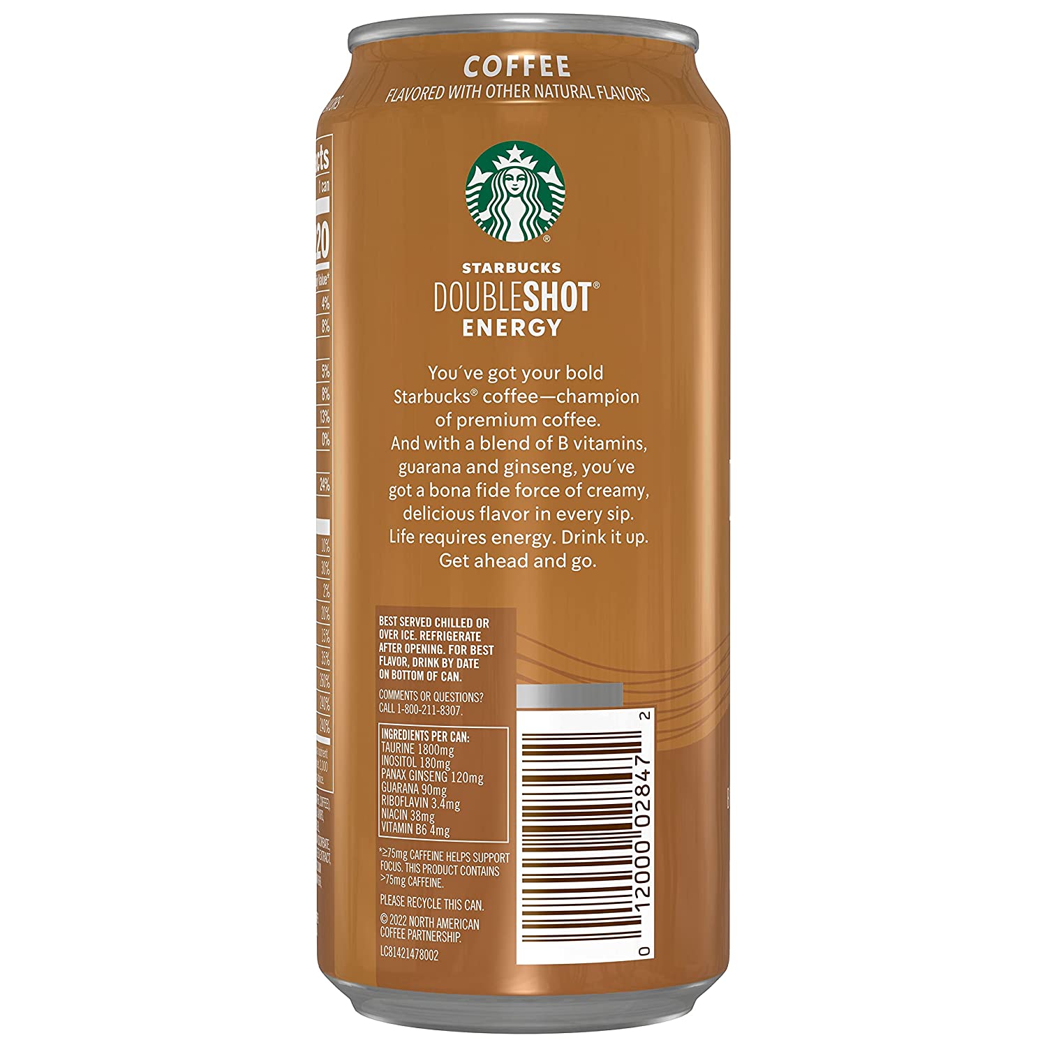 Nothing delivers like the unmistakably rich taste of bold Starbucks coffee in this Starbucks Doubleshot Energy drink. Rich, bold Starbucks coffee with our classic caramel flavor makes quite the dynamic duo. Blended with B vitamins, guarana and ginseng, to give you a tasty kick to own the day. Drink up.​ Cheers to the possibilities. Experience a new burst of flavor.​