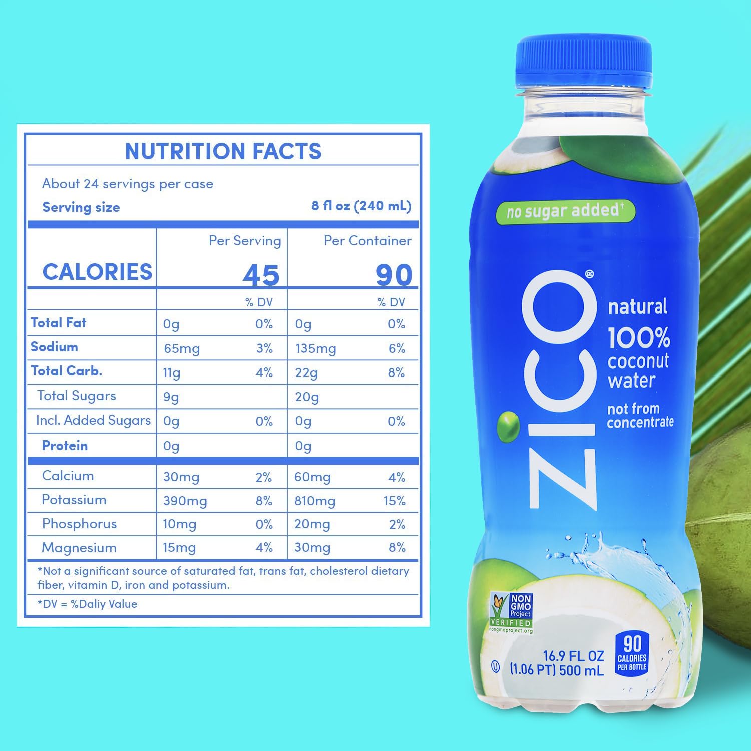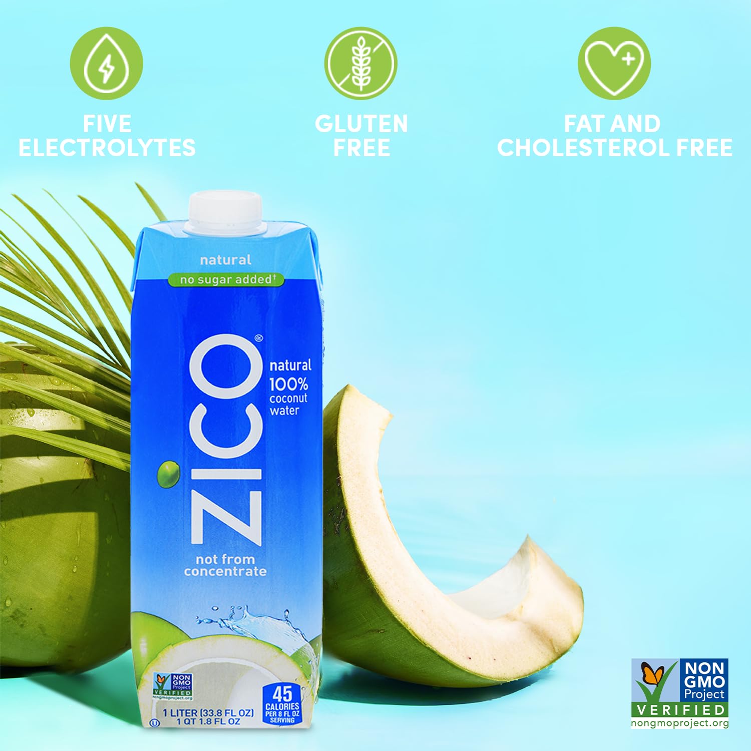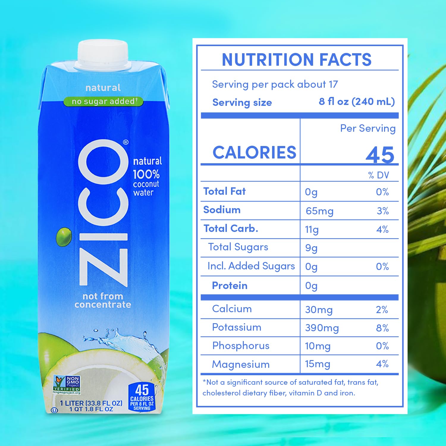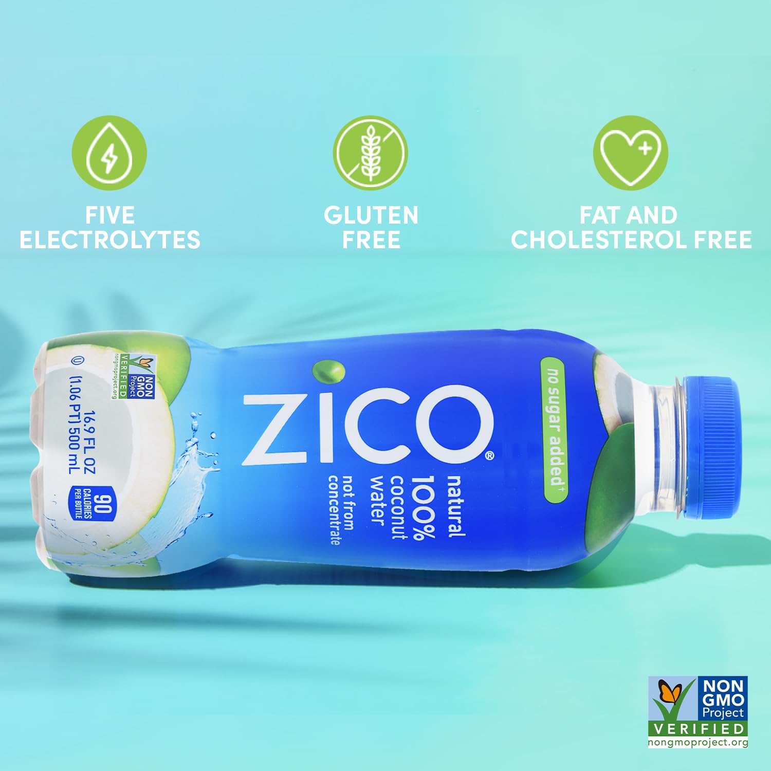 ZICO Natural 100% Coconut Water has just 1 natural ingredient – coconut water. ZICO supports hydration with five naturally-occurring electrolytes, including as much potassium as a banana per bottle. With NO added sugar, not from concentrate, fat-free, gluten-free, and cholesterol-free, you can feel good cracking open a delicious hydrating with ZICO all day long. Replenish everyday moments, naturally, with ZICO.