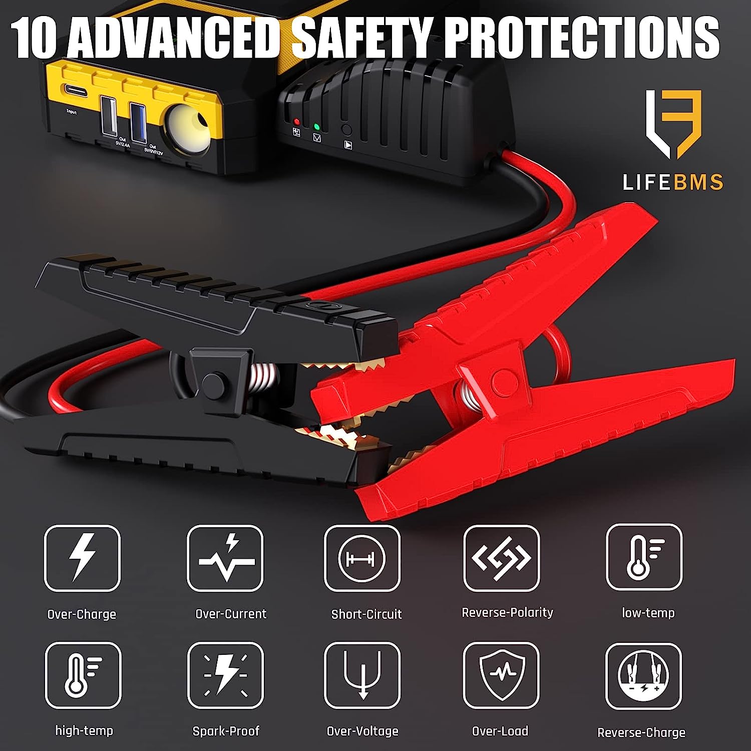• [Ten Advanced Security Protections] The V6 car battery booster is equipped with ten protected smart chips and jump cables with safety features. Under the double protection, you can use our battery starter more worry-free and convenient. In addition, if car battery charger jump starter indicator light doesn't light up or flash green, the "BOOST" button starting a totally dead battery(voltage less than 2V). You can keep jump starters in your car for peace of mind!