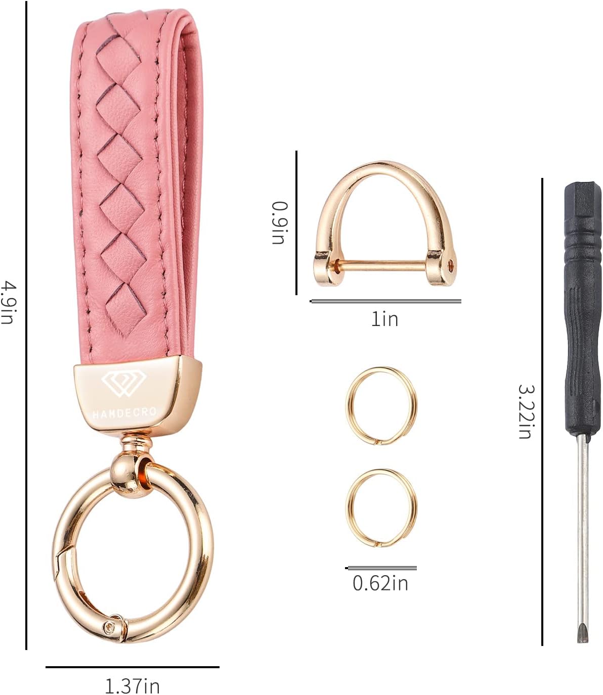 • 【Dimensions & Package Includes】: The key ring measures approx. 4.90 inches in total length,including zinc alloy, and 1.37 inches in width. The packaging includes 1 x sheepskin leather keychain,1 x D-ring,2 x keyrings,1 x screwdriver.