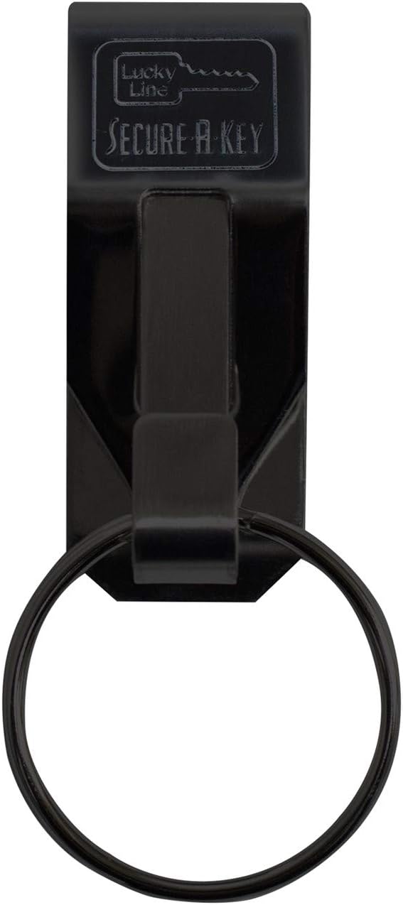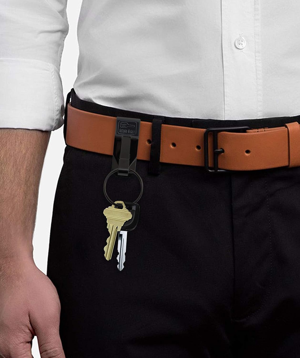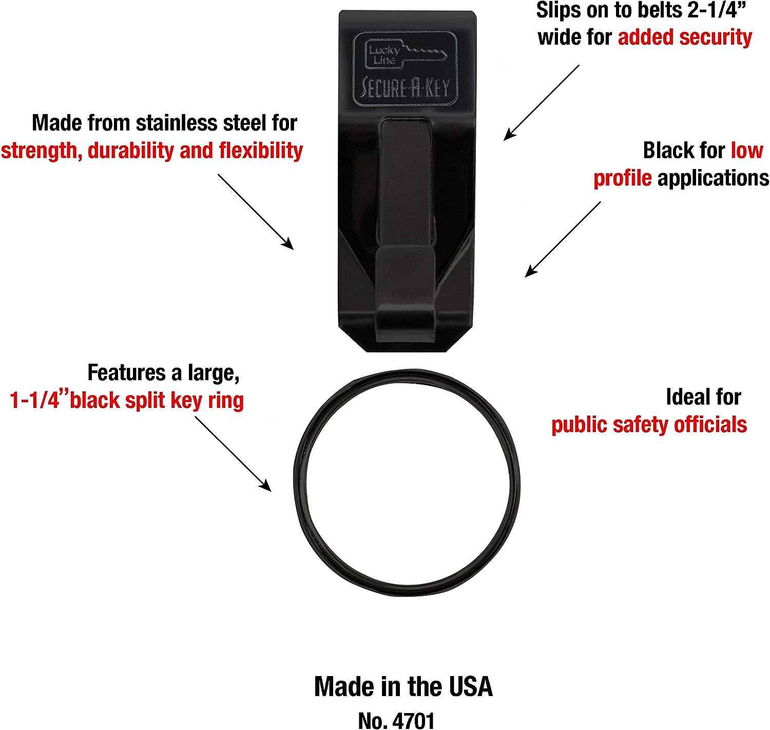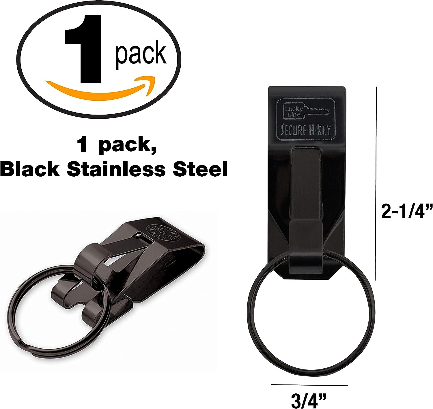 Belt Key Holder, Secure-A-Key, Clip on, Silver, Ring Dia. 1 1/8 In., Overall Length 2 In, Spring Stainless Steel, Includes Split Key Ring