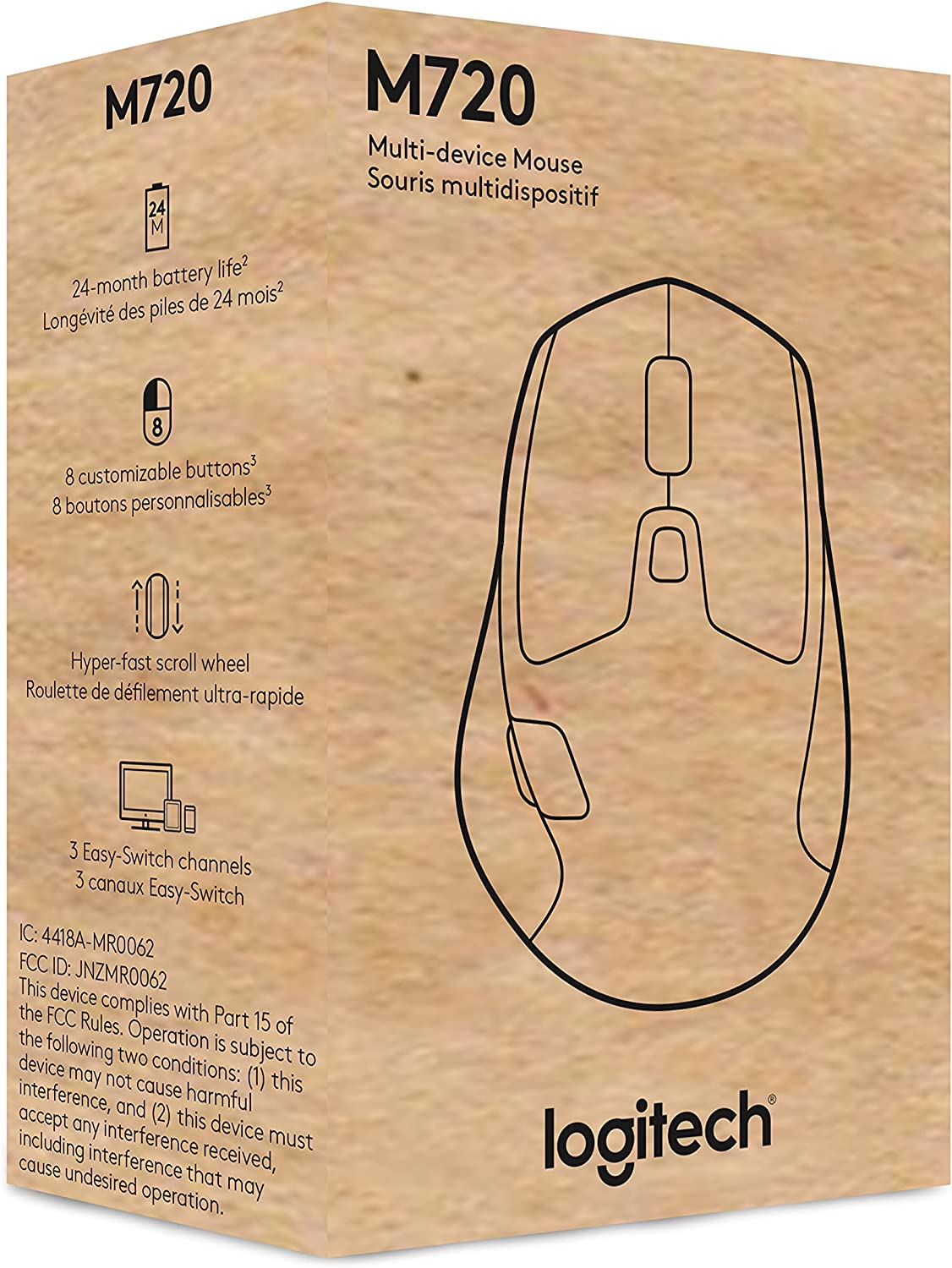 Built for endurance, versatility, and comfort, the M720 Triathlon Mouse helps you succeed in a multi-device world. You'll be powering through tasks thanks to the Easy-Switch technology that lets you switch seamlessly between 3 computers. You'll fly through documents and web pages using the hyper-fast scroll wheel, and hardly spare a thought to changing batteries thanks to 24 months of power on one AA battery. The large-sized sculpted shape fits comfortably under your hand, and the keys are designed to withstand up to 10 million clicks. You can connect to Windows and Mac via the tiny Unifying receiver or via Bluetooth Smart wireless technology.