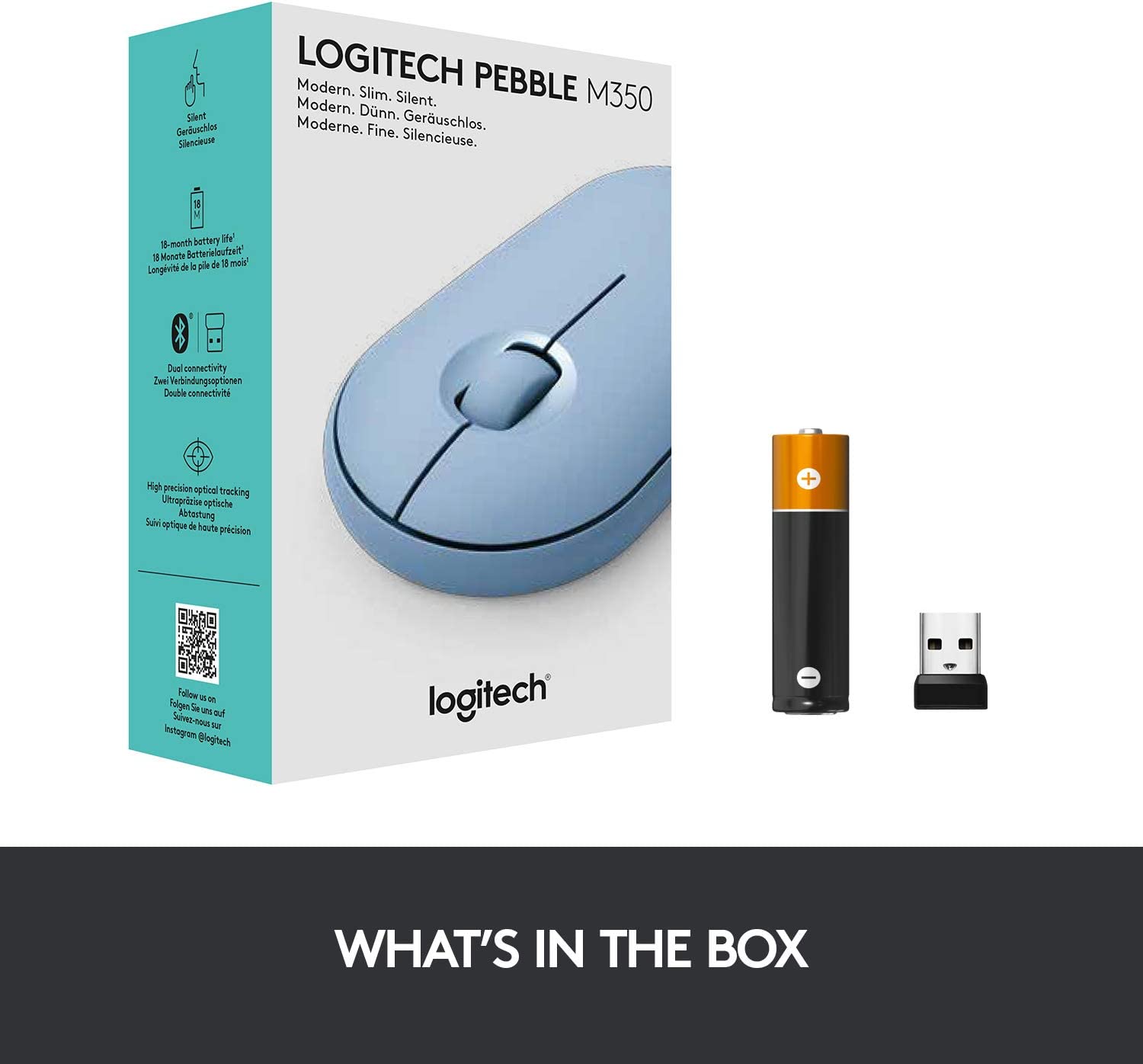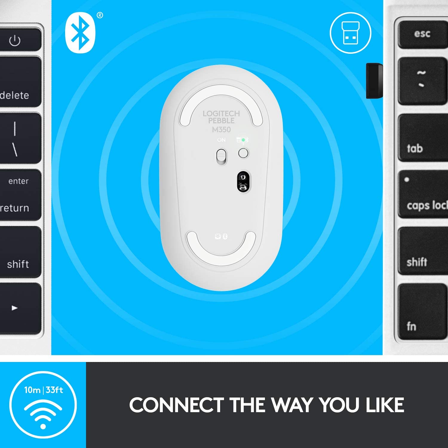 Own your space with Logitech Portable Wireless Mouse M350 – a modern, slim, and silent portable mouse designed for your curated lifestyle. Make a statement with this slim mouse that can easily be scooped up and brought to the cafe or library. Silent clicking and scrolling means you can stay focused without disturbing those around you. And the Portable Wireless Mouse M350 stays powered for 18-months on a single AA battery so you don’t have to worry about losing power. Connect the Portable Mouse M350 the way you want – via either Bluetooth or the USB receiver. The high-precision optical tracking works on most surfaces. Battery life may vary based on user and computing conditions.