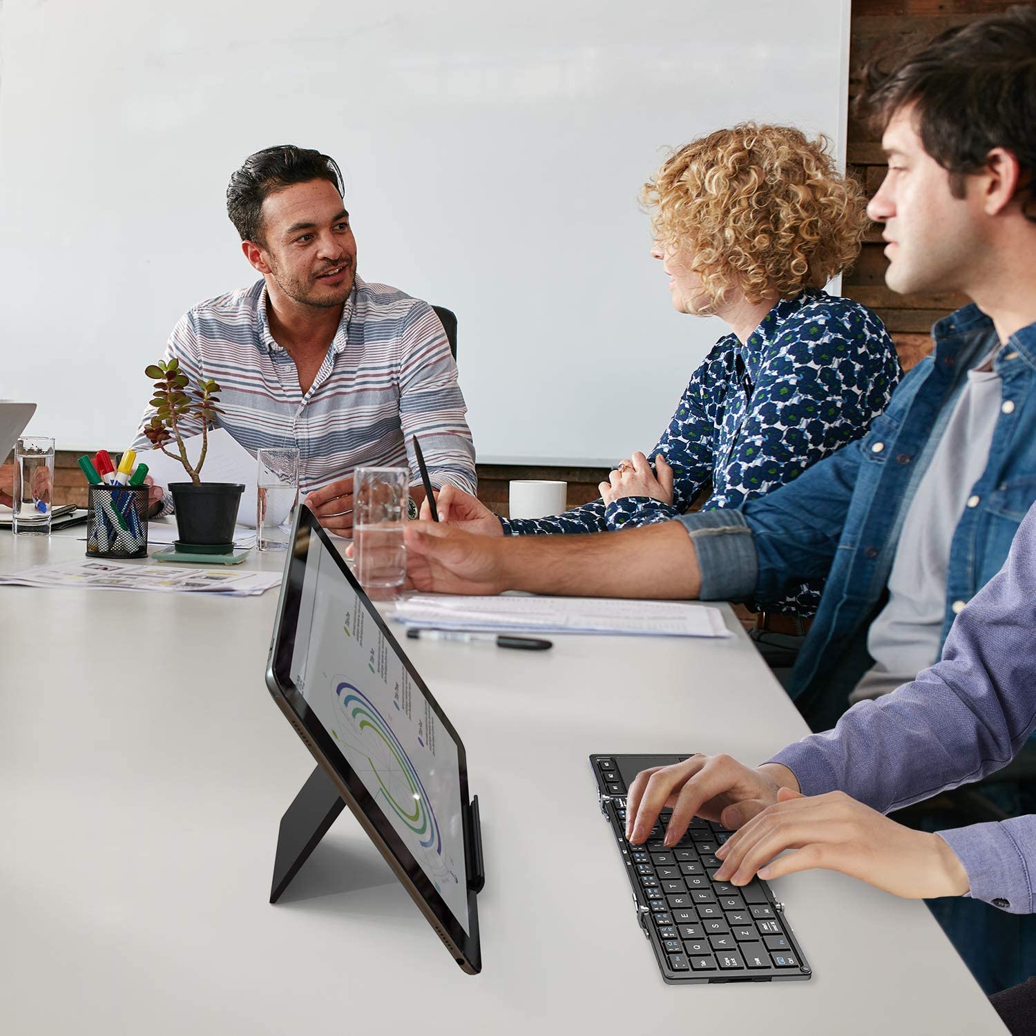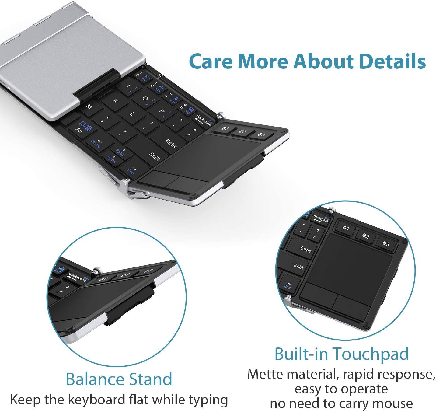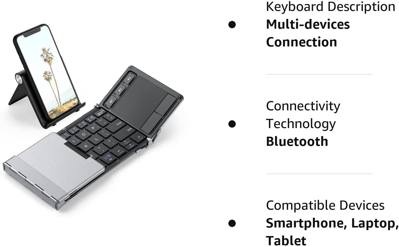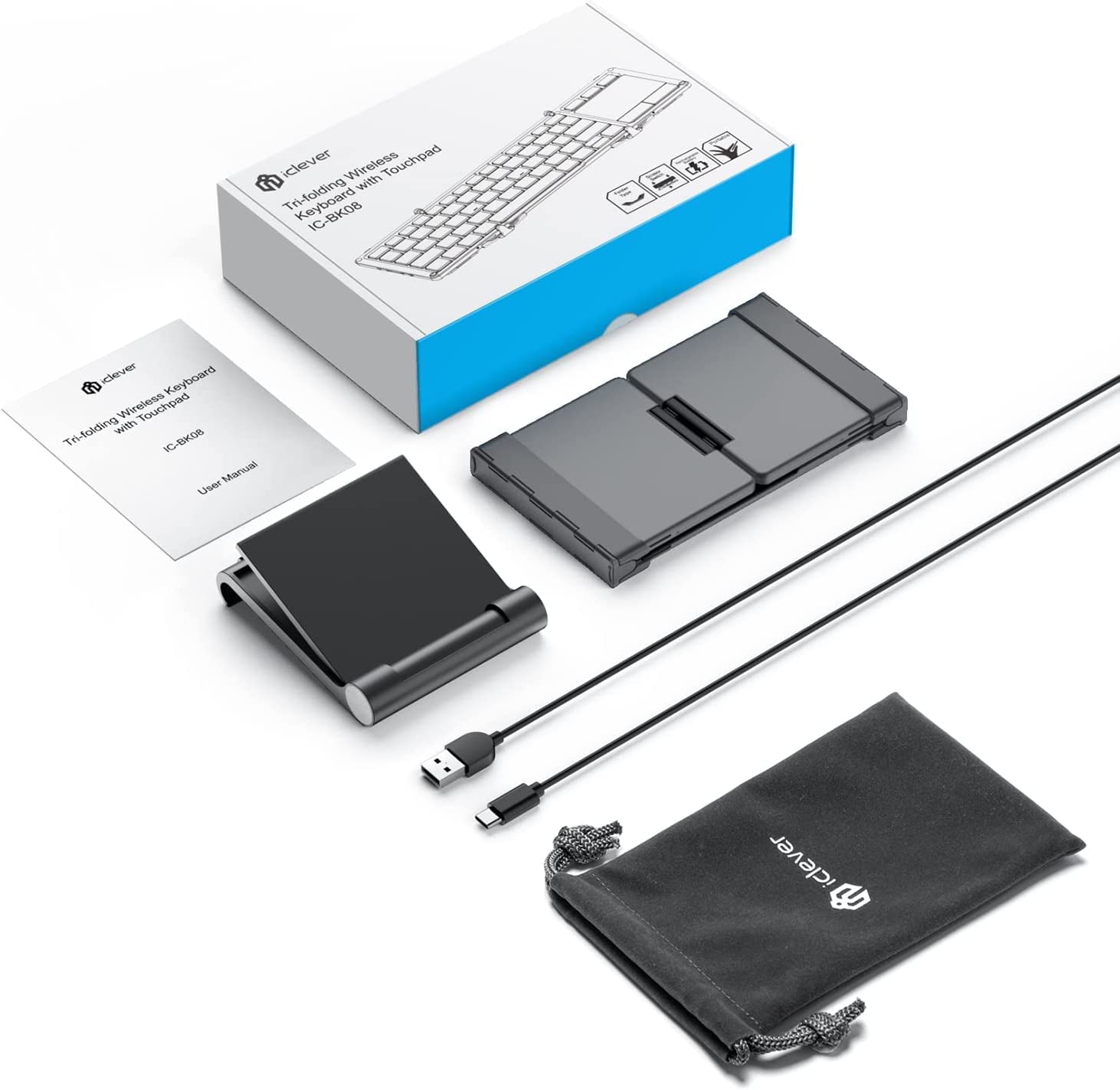 iClever Bluetooth Keyboard, BK08 Folding Keyboard with Sensitive Touchpad (Sync Up to 3 Devices), Pocket-Sized Tri-Folded Fodable Keyboard for Windows Mac Android iOS