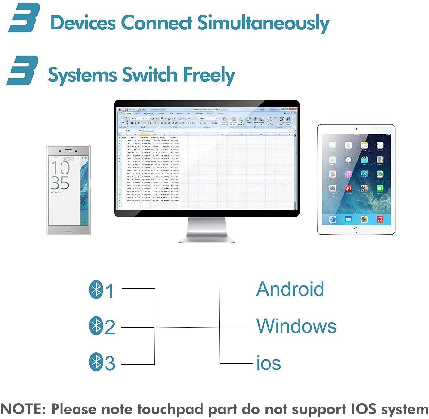 • MULTI-DEVICES and MULTI-OS: Seamlessly switches among 3 devices with BT 5.1 tech. Automatically recognizes different operating systems and layouts. Supports Windows PC/Laptop, iMac/Macbook, iPhone/iPad, Android smartphone/tablet.