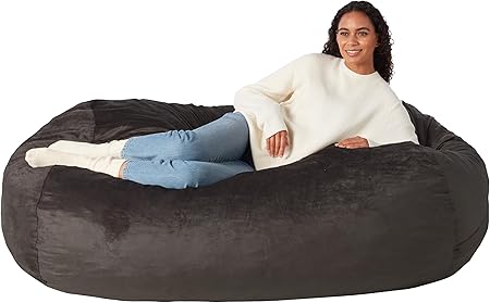 Amazon Basics Memory Foam Filled Bean Bag Lounger with Microfiber Cover, 6 ft, Grey, Solid