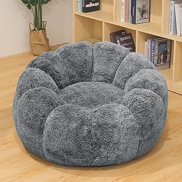 Bean Bag Chair with Filler, Faux Fur Bean Bag Chairs for Adults with Low Back Support Petal Armrest Fluffy Bean Bag Chair with Structure Comfy Chair for Bedroom, Living Room, Game, Grey