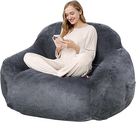 FAREYY Bean Bag Sofa Chair, Plush Bean Bag Chair for Adults, Lazy Bean Bag Sofa with High-Density Foam, Removable Comfy Bean Bag Couch in Living Room (Grey)