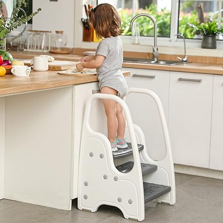 3 Step Stool Foldable with Handle for Toddler and Kids, Standing Tower for Bathroom Sink, Potty Training, Children Step Up Learning Helper with Handles and Safety Non-Slip Pads(Gray)