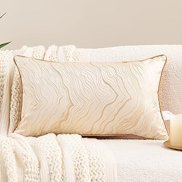 Avigers 12 x 20 Inch Rectangle Beige Gold Abstract Striped Embroidery Cushion Case Luxury Modern Throw Pillow Cover Decorative Pillow for Couch Living Room Bedroom Car