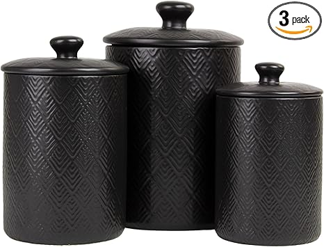 10 Strawberry Street Kitchen Canister, 3 Piece Set, Marquis Matte Black