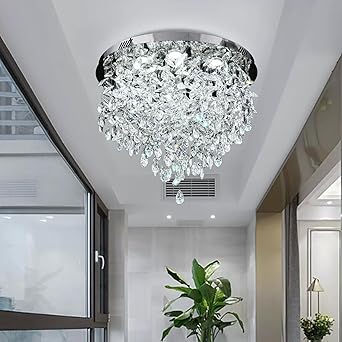 24 inche Modern Round Raindrop Crystal Chandelier Luxury Flush Mount Chrome Crystal Ceiling Light Fixture for Dining Room Hallway Bedroom Living Room Kitchen Dimmable 3000K-6000K