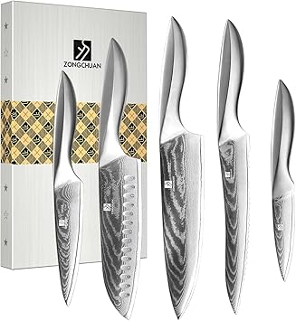 5 PCS Damascus Chef Knife Set, Ultra-Smooth Cutting Experience and Professional Grade Sharp, Kitchen Knife Set, Handle Ergonomic Design, 9CR18MOV High Carbon Stainless Steel, Dishwasher Safe
