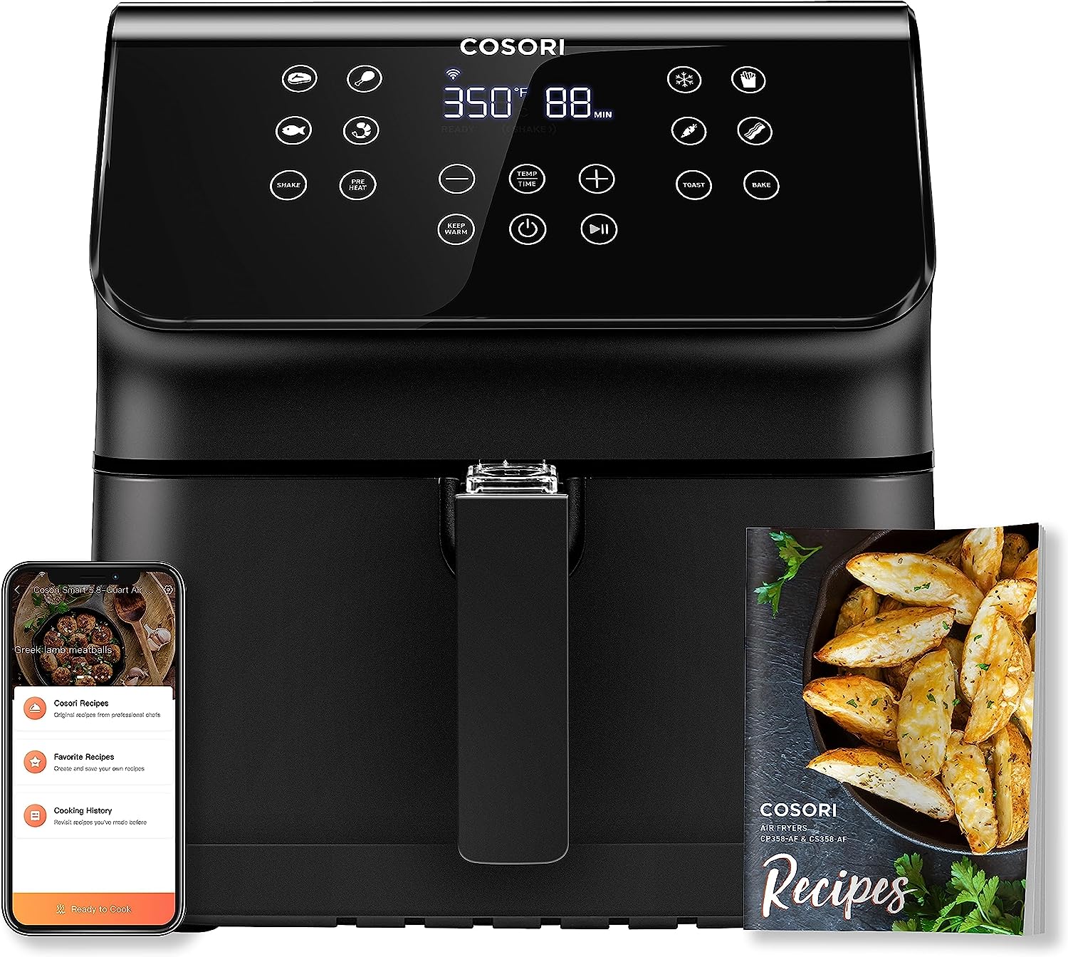 COSORI Pro II Smart Air Fryer 5.8QT, 12 One-Touch Customizable Functions, 3-Way Control, Cookbook and Online Recipes, Dishwasher-Safe Detachable Basket, Works with Alexa & Google Assistant