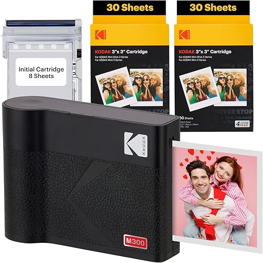 KODAK Mini 3 ERA 4PASS Portable Photo Printer (Black, Printer + Initial 8 Sheets + 60 Sheets)