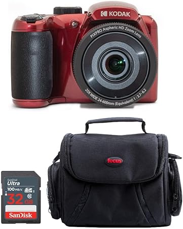 Kodak PIXPRO AZ255 Astro Zoom 16MP Digital Camera (Red) Bundle with 32GB SDHC UHS-I Memory Card, and SLR Soft Photo and Video Medium Case (3 Items)
