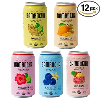 Bambucha Kombucha Variety 12 Pack Case | Chef Crafted Flavors, 100% Raw Kombucha Live Cultured Tea Drink | Organic, Vegan, Gluten Free, Non GMO, Probiotic (12 Fl Oz Cans)