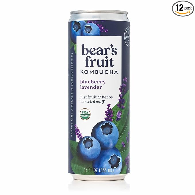 Bear's Fruit Organic Raw Kombucha. Blueberry Lavender. Made with 100% Whole Fruit & Fresh Herbs - No Artificial Flavors, No Fake Sweeteners, No Weird Stuff. 12oz (12 Pack)