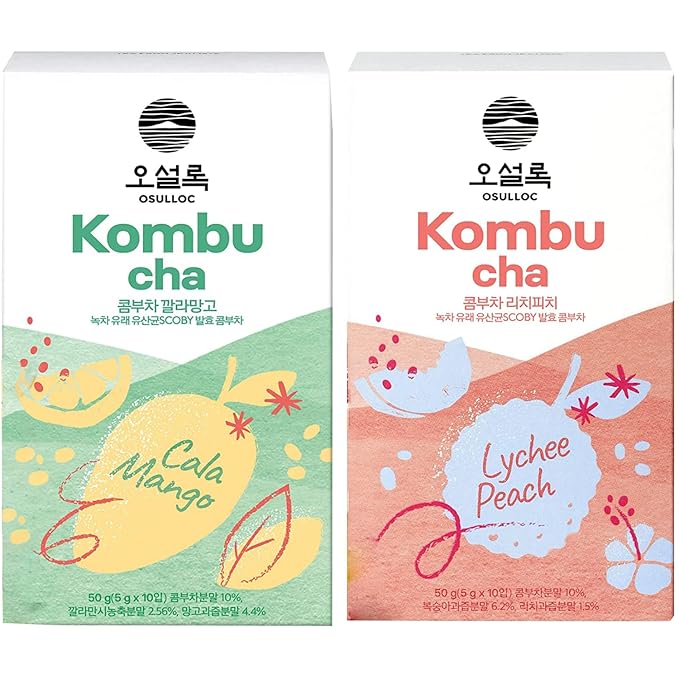 Osulloc Kombucha (Lychee & Peach Blending) + Kombucha (Calamansi & Mango Blending)