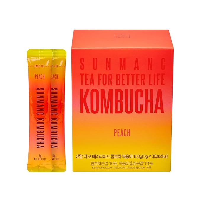 SUNMANC Kombucha 30 packets, Sparkling Probiotic Fermented Drink, Convenient Powdered Drink Mix, Tea Powder, Low Calories, Sugar 0g, Low Caffeine (Peach)
