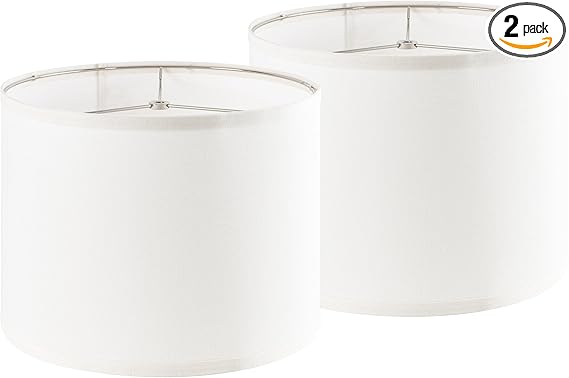 PAPAYA Set of 2 Cream White Lamp Shades Large Durm Lampshades 16" Top x 16" Bottom x 12" High (Spider«__Modern Lampshade for Table and Bedside Lamp