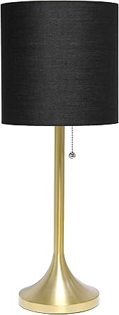 Simple Designs LT1076-GDB Tapered Fabric Drum Shade Table Lamp, Gold and Black, Gold/Black, 8 x 8 x 21