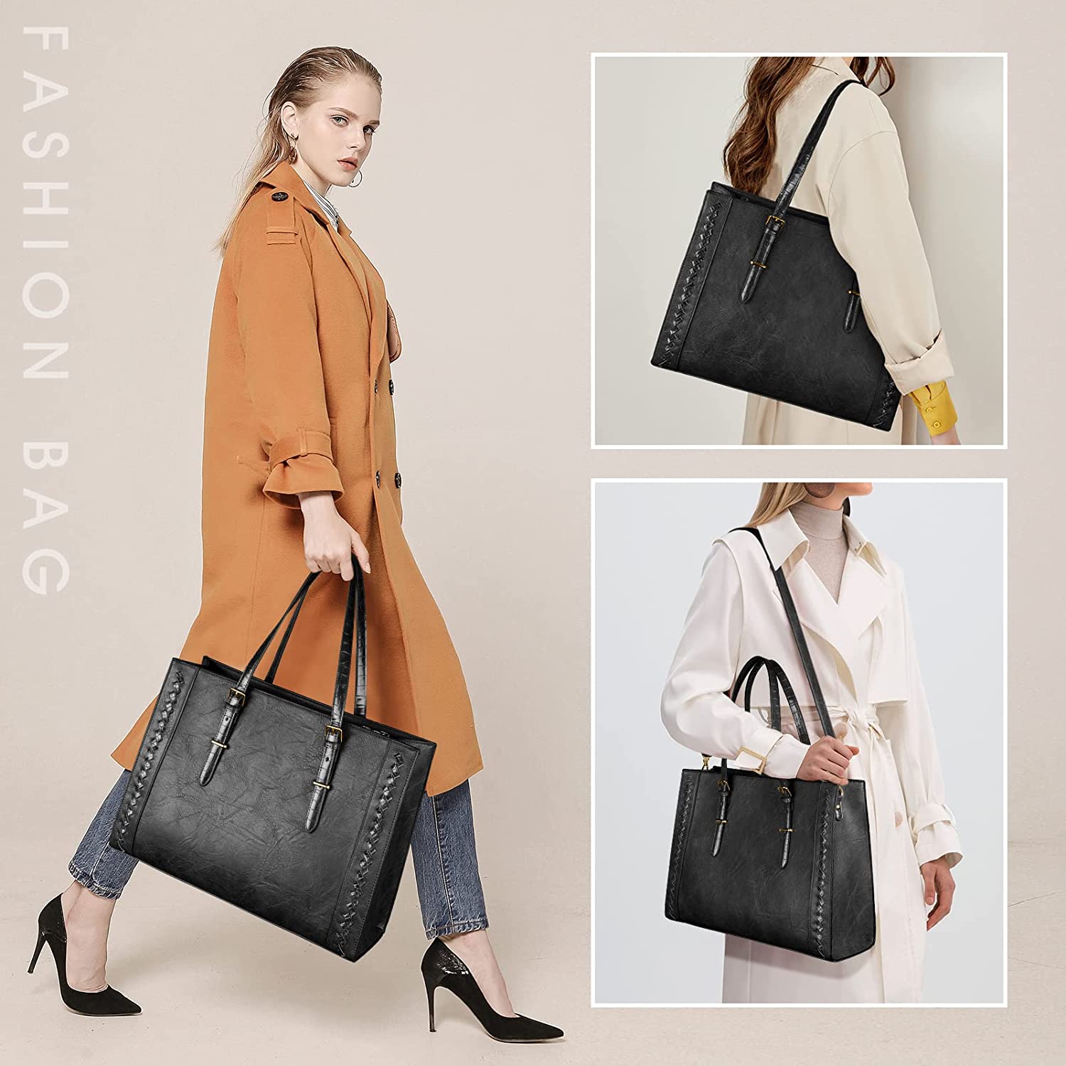 • Large Womens Briefcase: The dimension of shoulder bag is 16.9 x12.5 x 5.8 inch; Handles drop: 9.8-12.9 inch; Extremely lightweight just 1.0 KG, you could use a laptop tote bag, work bag, briefcase handbag, shoulder bag or a crossbody bag for women as well, convenient and comfortable. Suitable for work, school, shopping, party, travel or any other occasions.