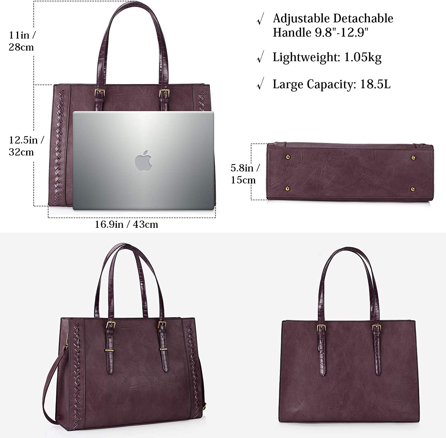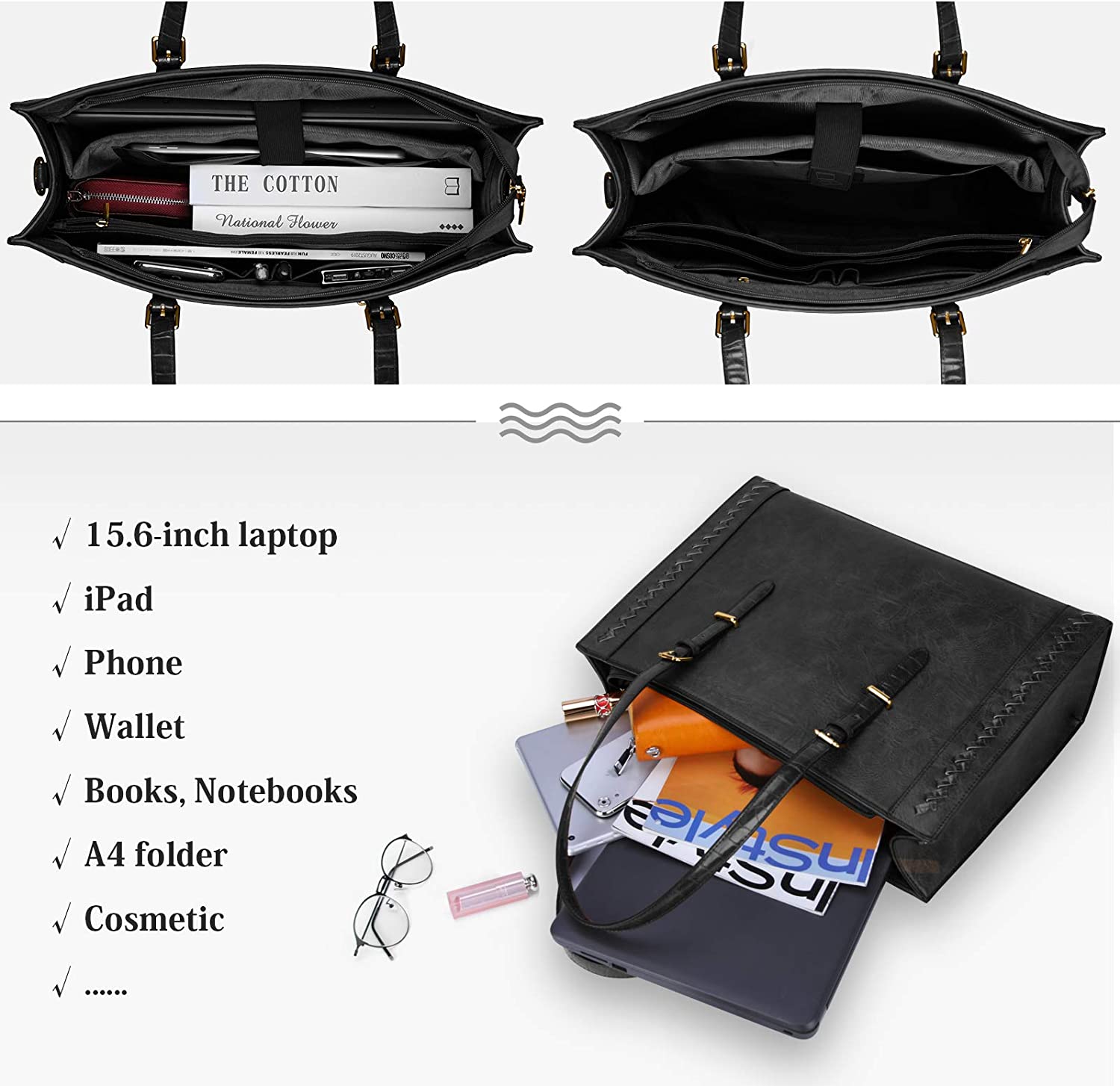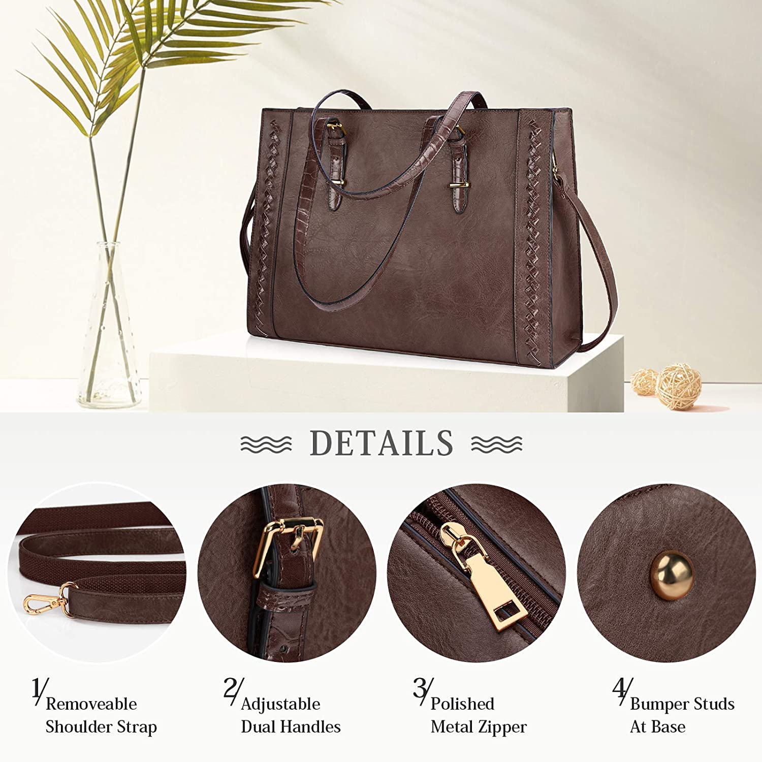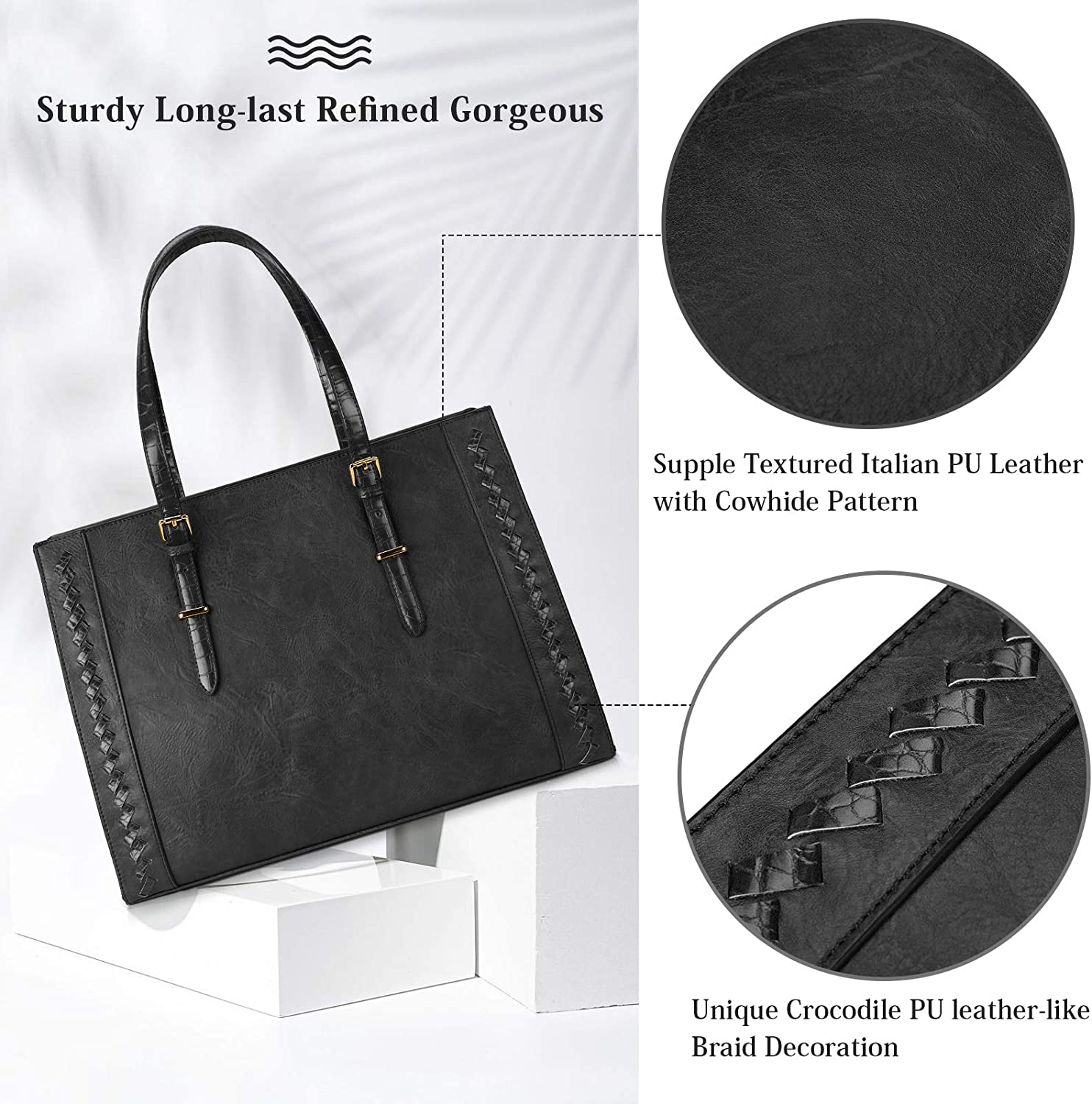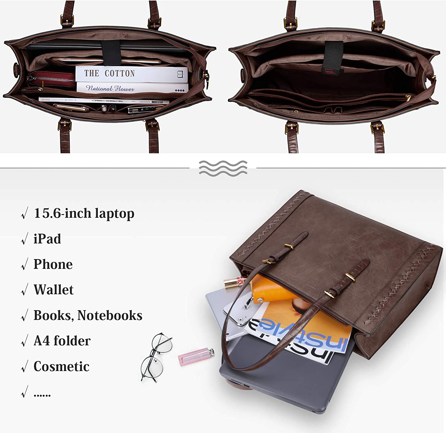• Well Organized with Multiple Compartments: A laptop compartment to hold a 13”-15.6" laptop and tablet with room to spare,A zip compartment to secure paperwork, files and two open sections with room for cosmetics, documents, wallet. Multiple pockets for small essentials, keys,earphone,bottles.Exactly keep your daily business essentials well organized.This stylishly oversized womens briefcase goes from workday to weekend without missing a beat.