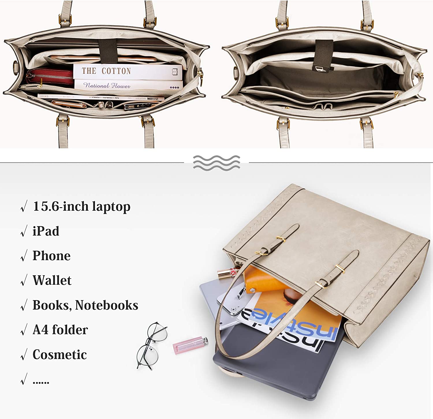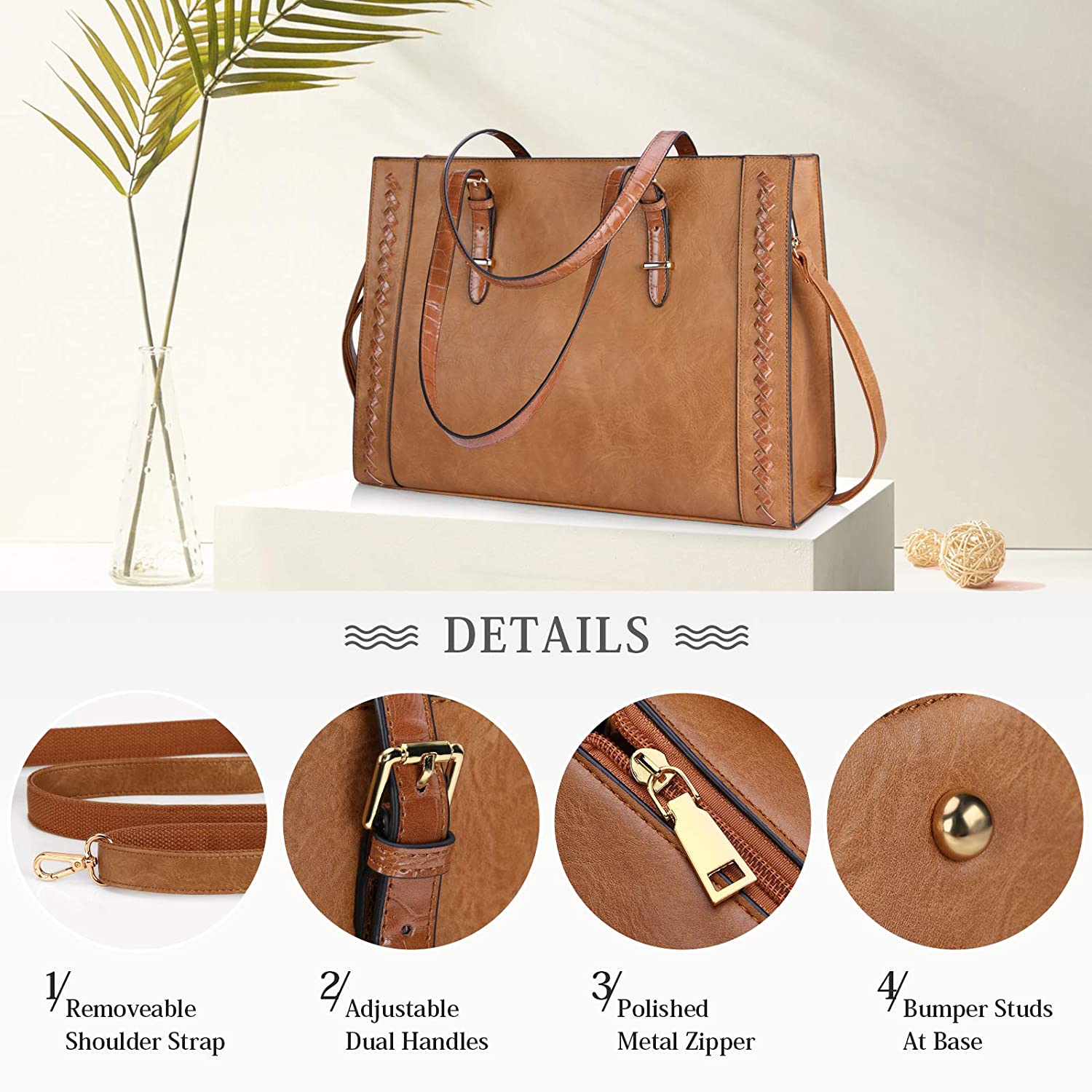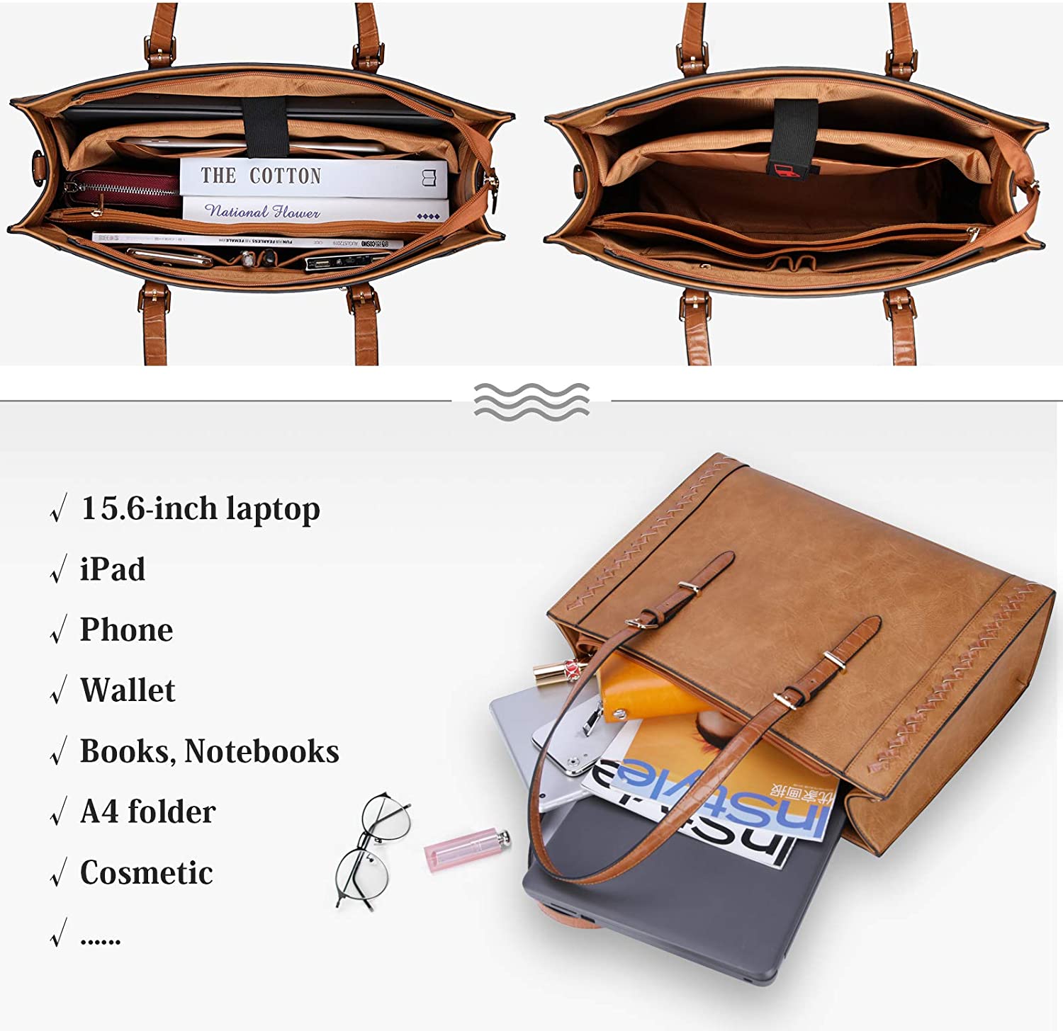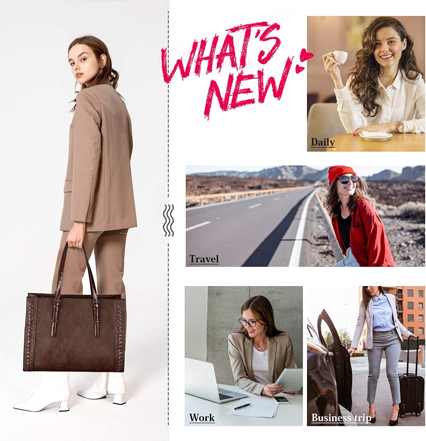 • Well Organized with Multiple Compartments: A laptop compartment to hold a 13”-15.6" laptop and tablet with room to spare,A zip compartment to secure paperwork, files and two open sections with room for cosmetics, documents, wallet. Multiple pockets for small essentials, keys,earphone,bottles.Exactly keep your daily business essentials well organized.This stylishly oversized womens briefcase goes from workday to weekend without missing a beat.
