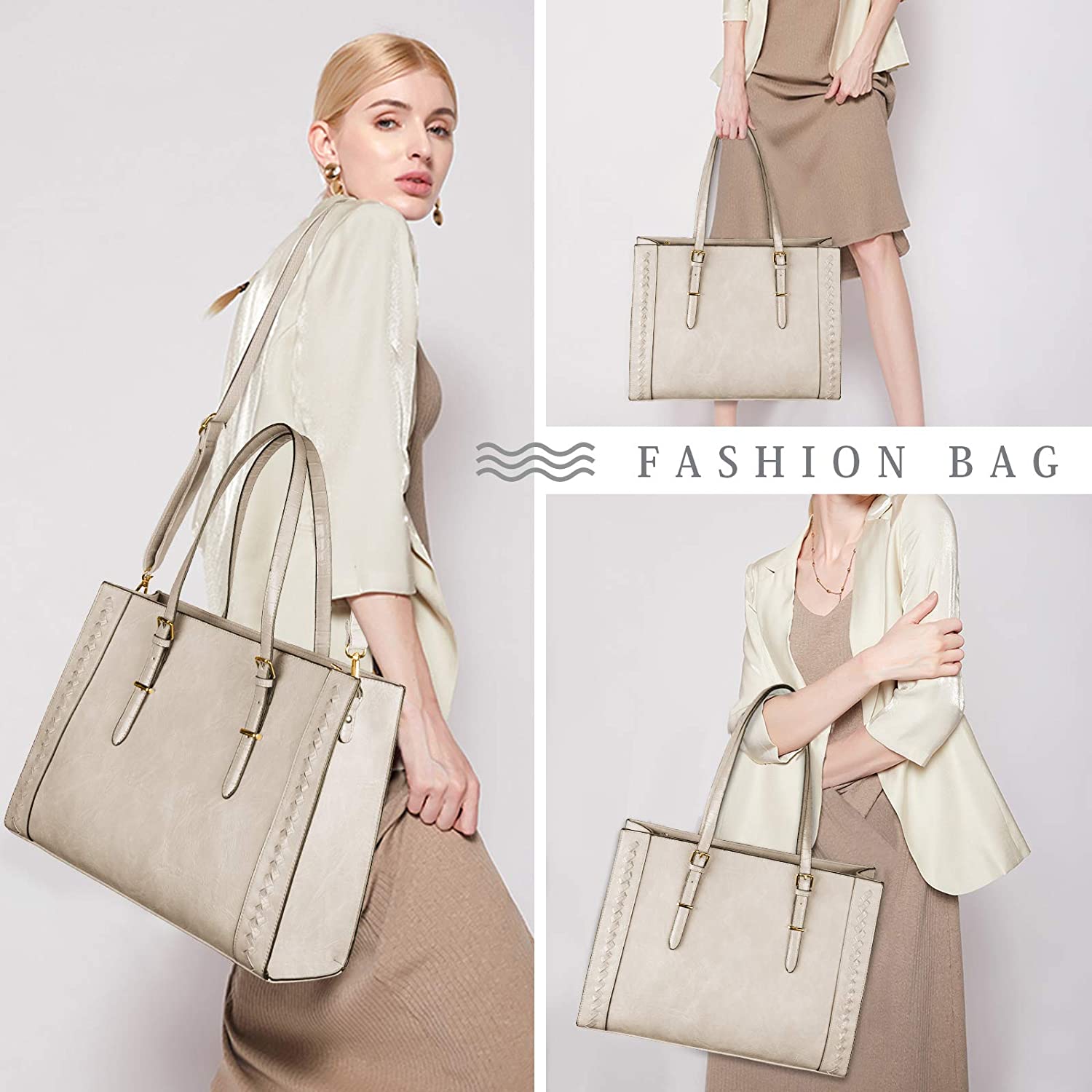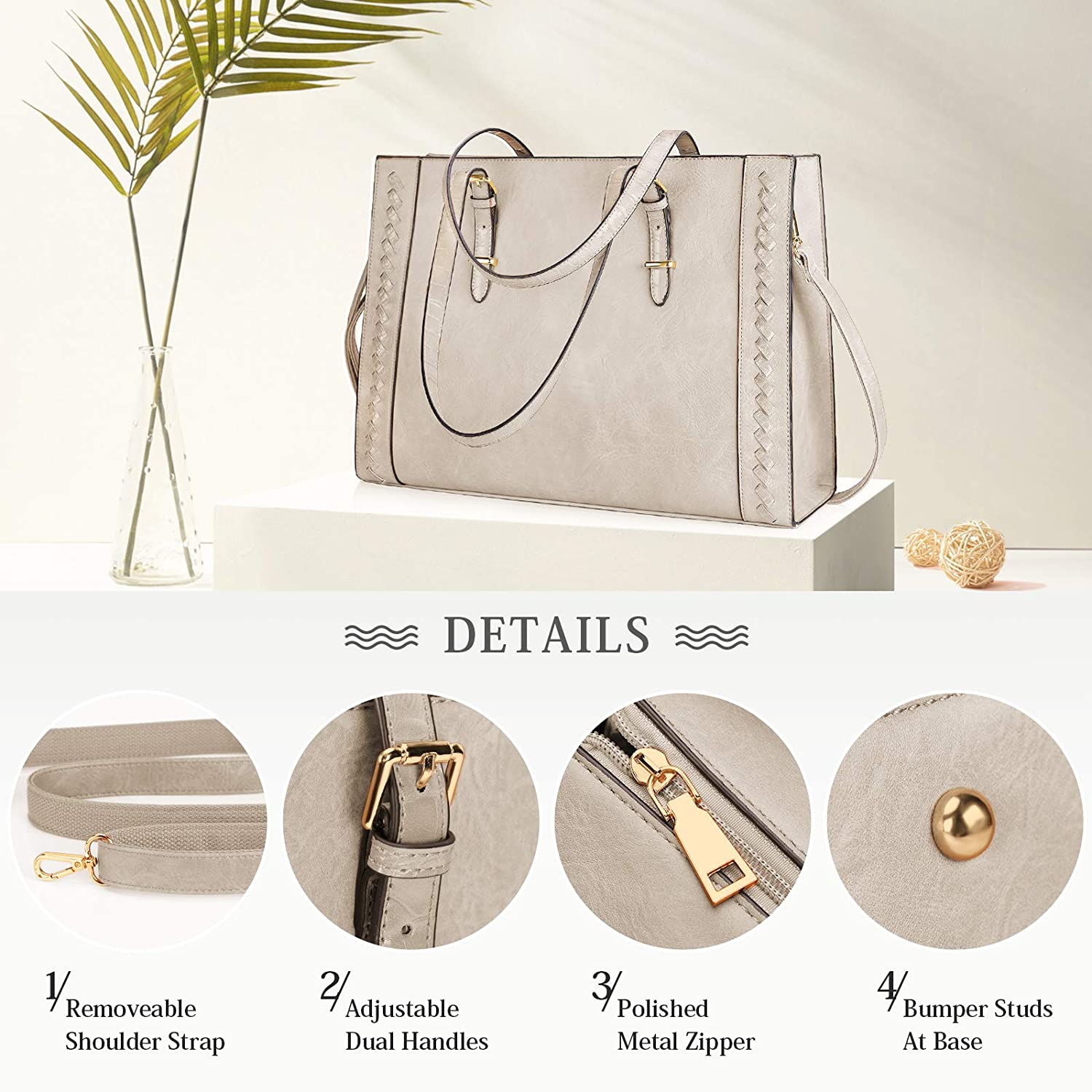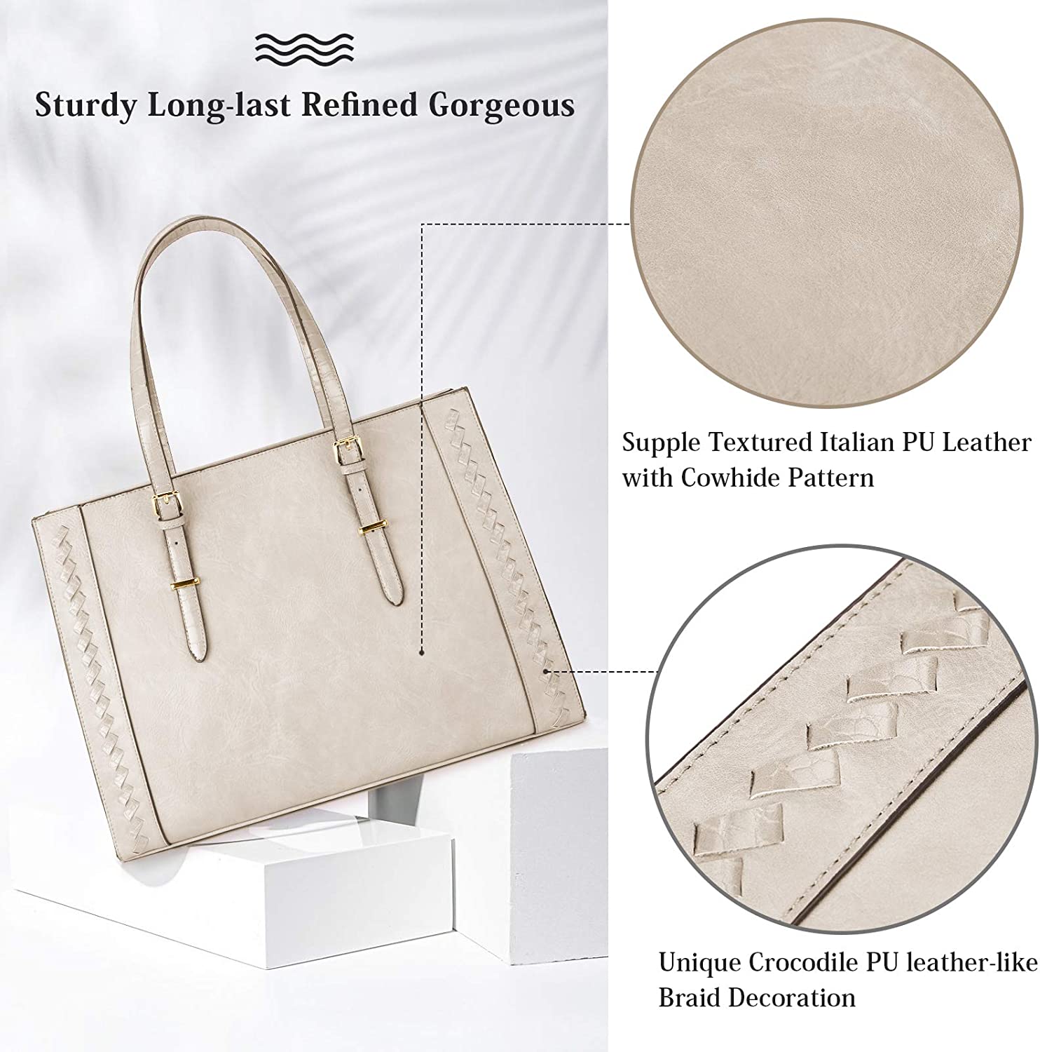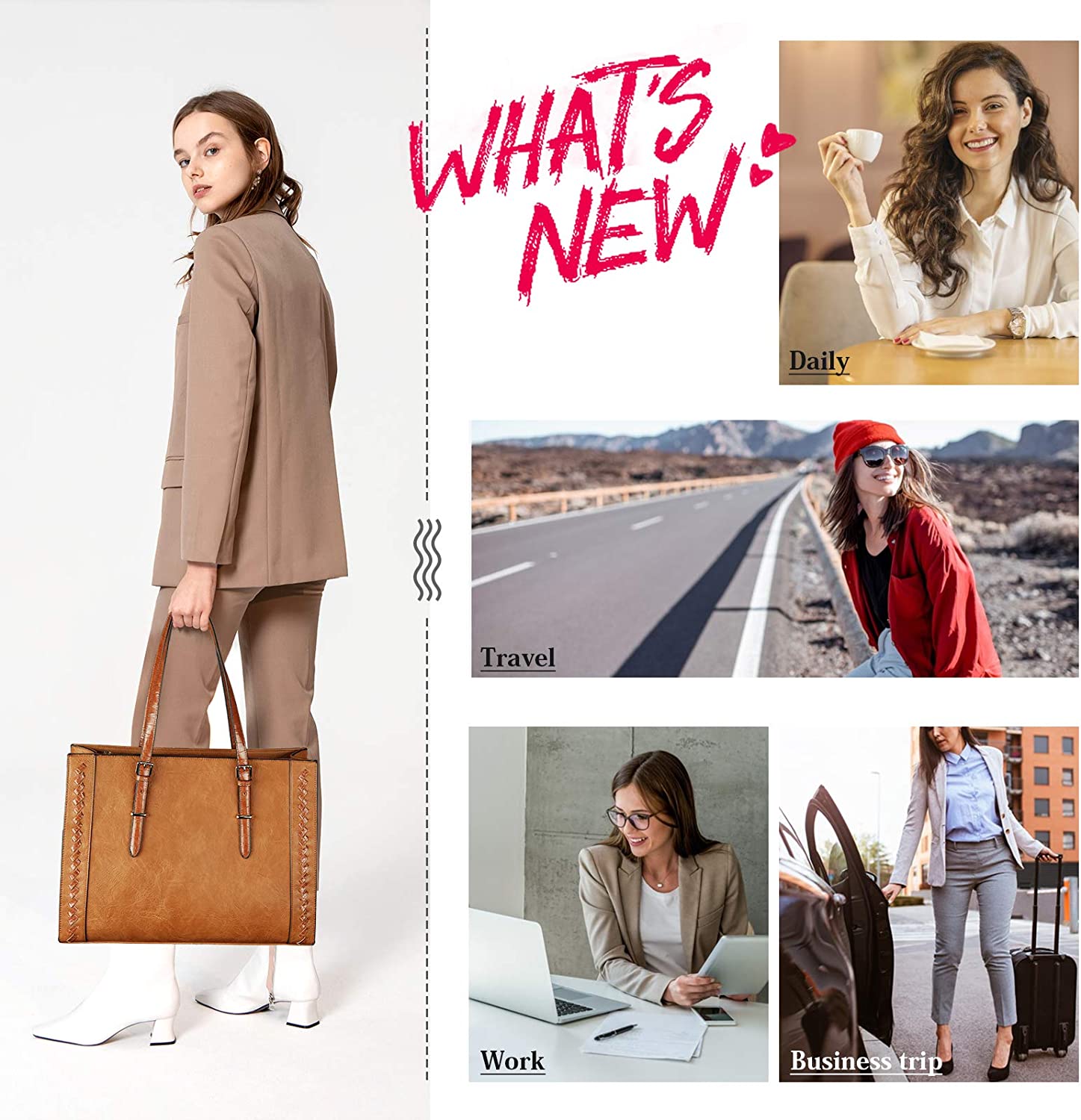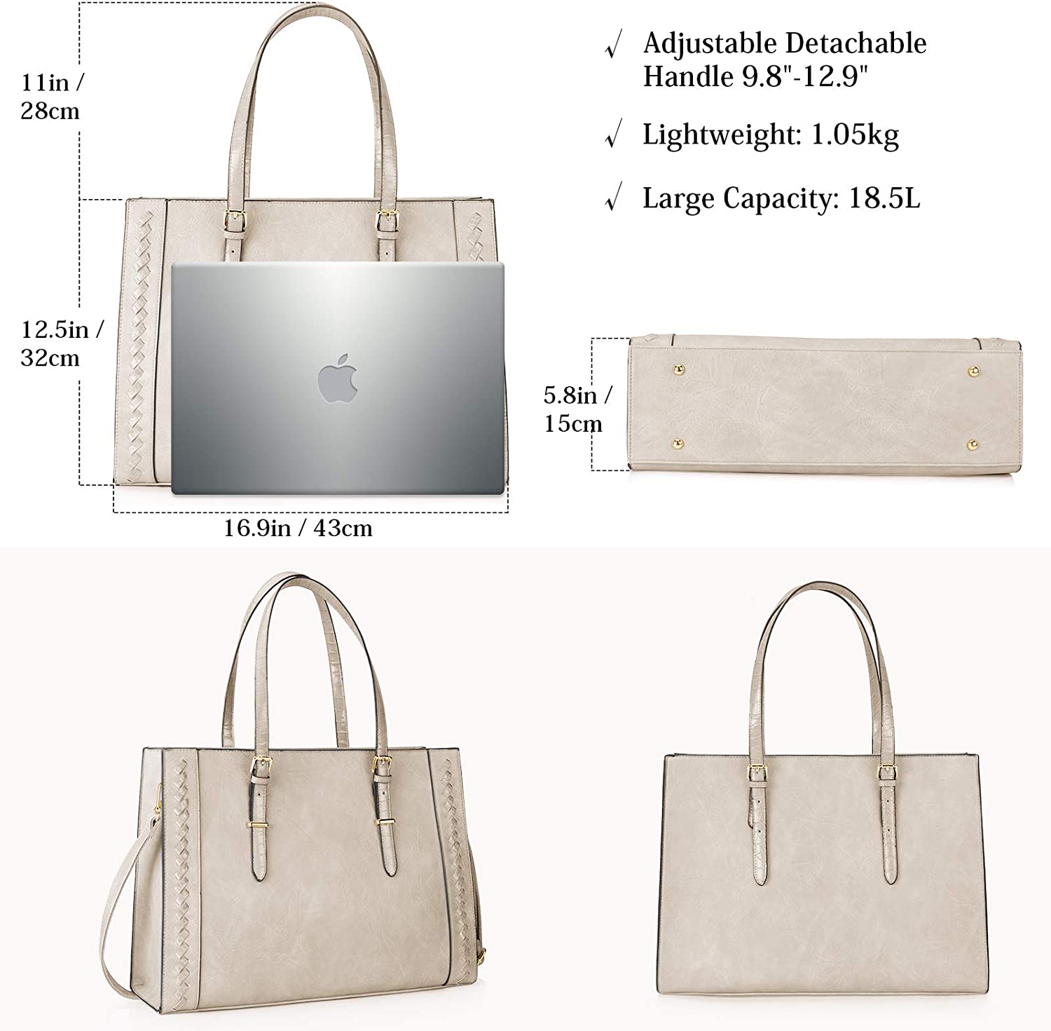 • Well Organized with Multiple Compartments: A laptop compartment to hold a 13”-15.6" laptop and tablet with room to spare,A zip compartment to secure paperwork, files and two open sections with room for cosmetics, documents, wallet. Multiple pockets for small essentials, keys,earphone,bottles.Exactly keep your daily business essentials well organized.This stylishly oversized womens briefcase goes from workday to weekend without missing a beat.