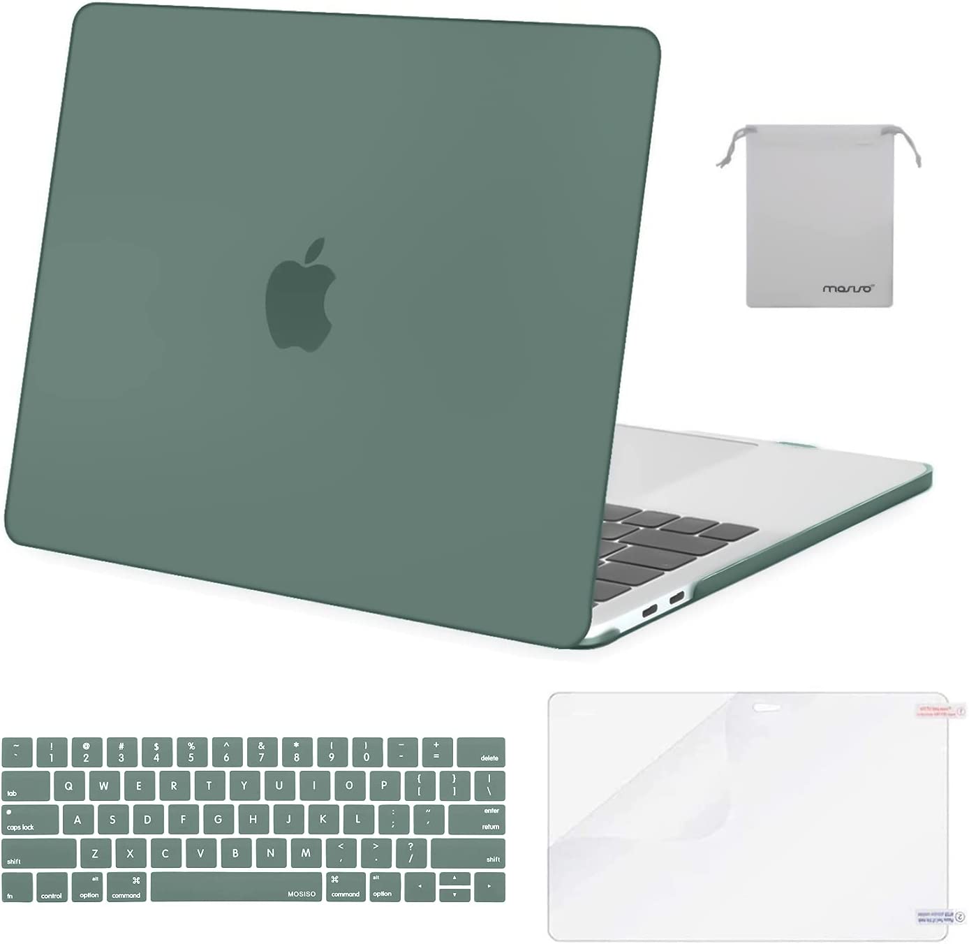 MOSISO Compatible with MacBook Pro 13 inch Case M2 2023, 2022, 2021-2016 A2338 M1 A2251 A2289 A2159 A1989 A1708 A1706, Plastic Hard Shell&Keyboard Cover&Screen Protector&Storage Bag, Midnight Green