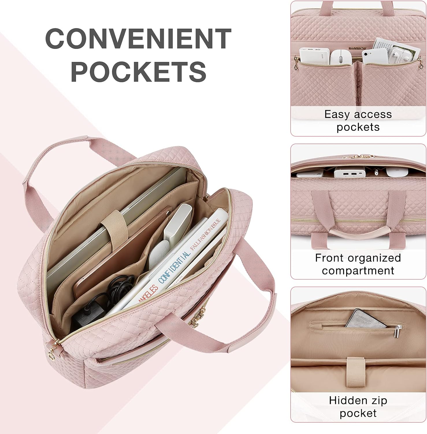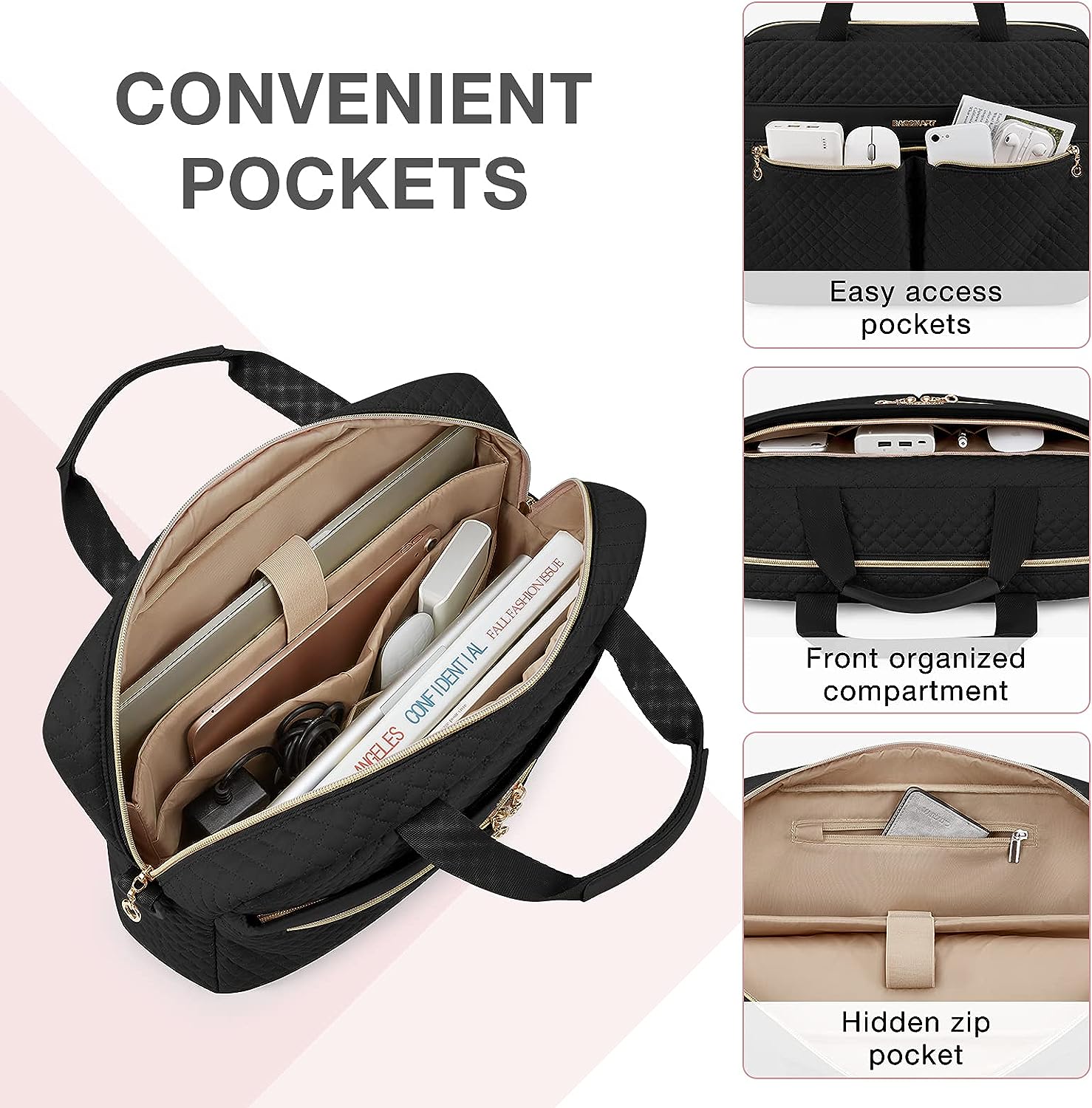 • LONG LASTING- Made of durable water resistant polyester fabric, with metal zippers to provide a sturdy and reliant using experience. It's perfect for professional office work, business travel or weekend getaway. Its quilted look can serve as a shoulder bag, office bag, laptop carrying bag, laptop crossbody bag, business bag for women.