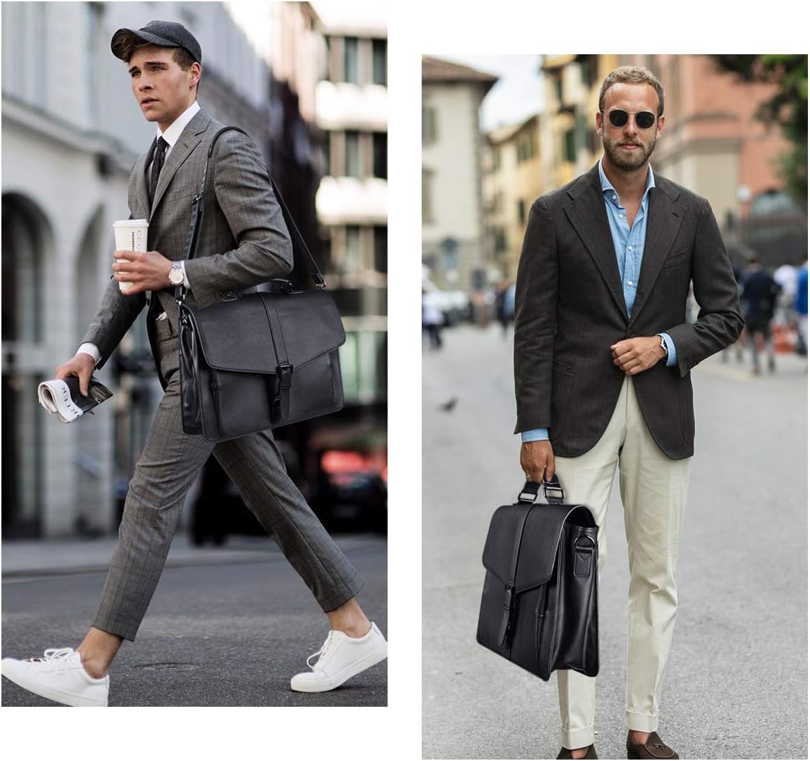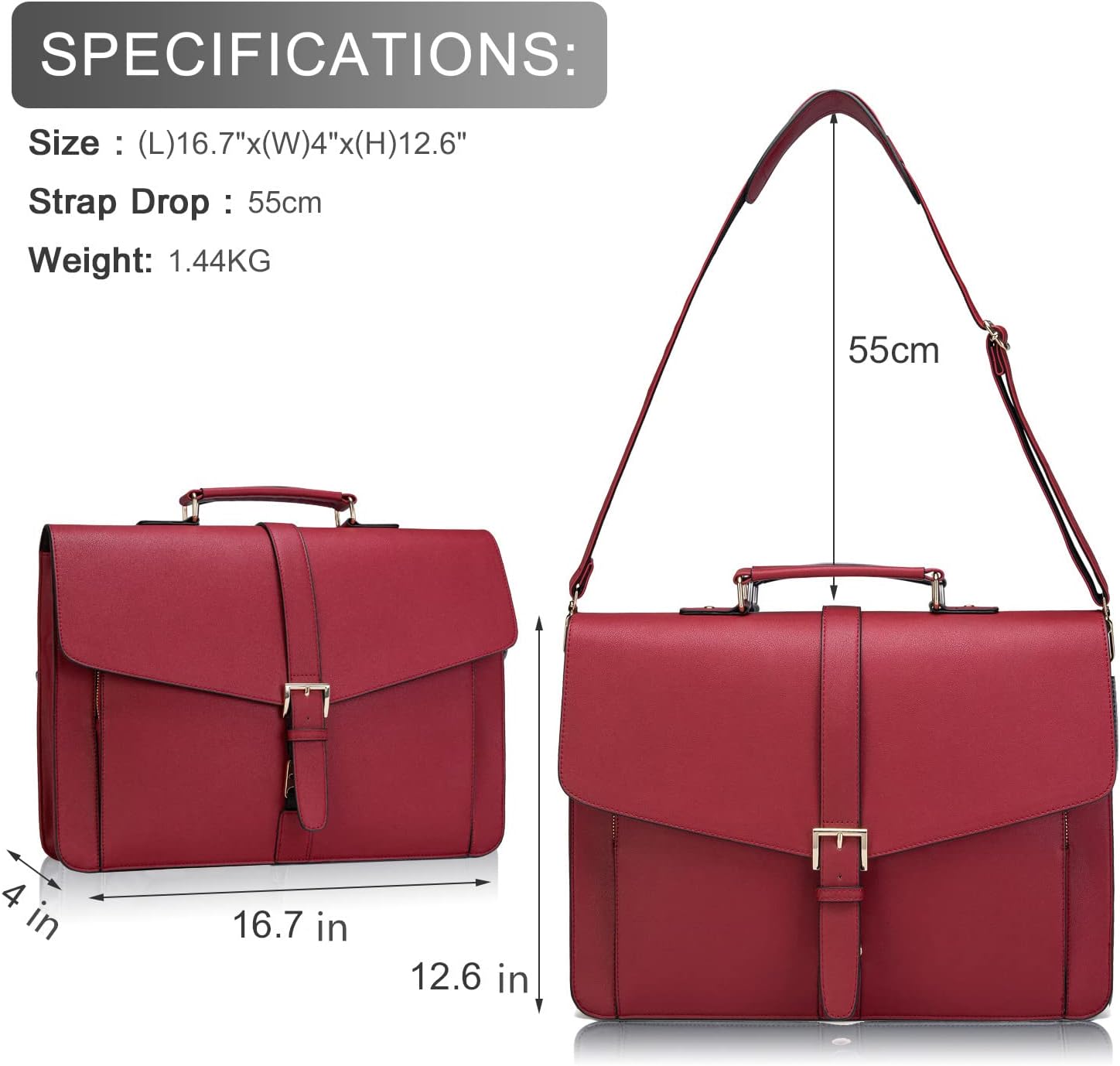 • High Quality Material: Vegan leather (pu leather), water-resistant. Briefcase size:17"(L)*4.5"(W)*12.5"(H). Strap length: max 62inch , min 20inch. Strap width: 1.2inch. Weight: 1.4kg, 3.09lb.