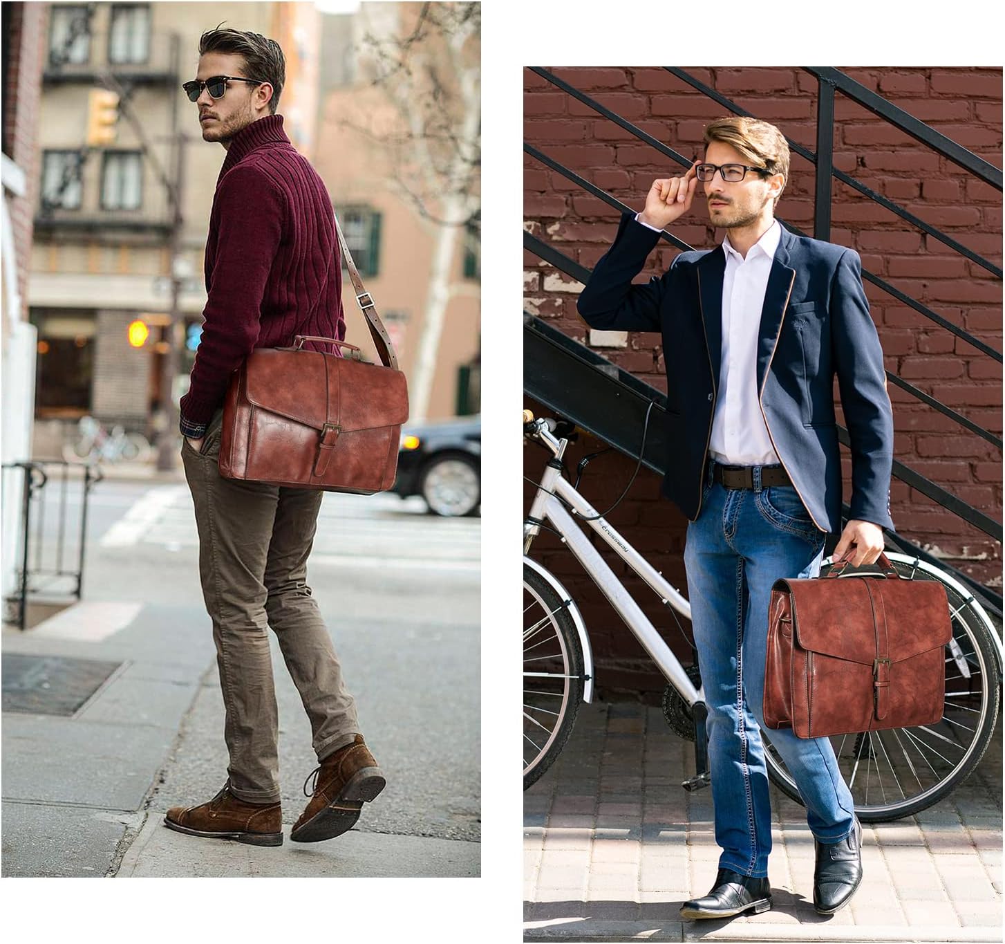 ESTARER Men's Leather Briefcase for Travel/Office/Business 15.6 Inch Laptop Messenger Bag