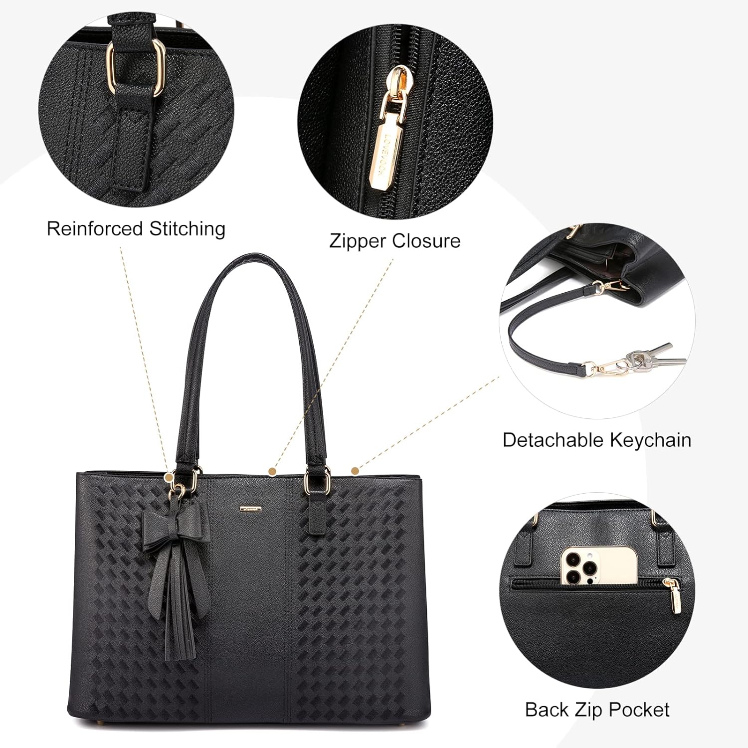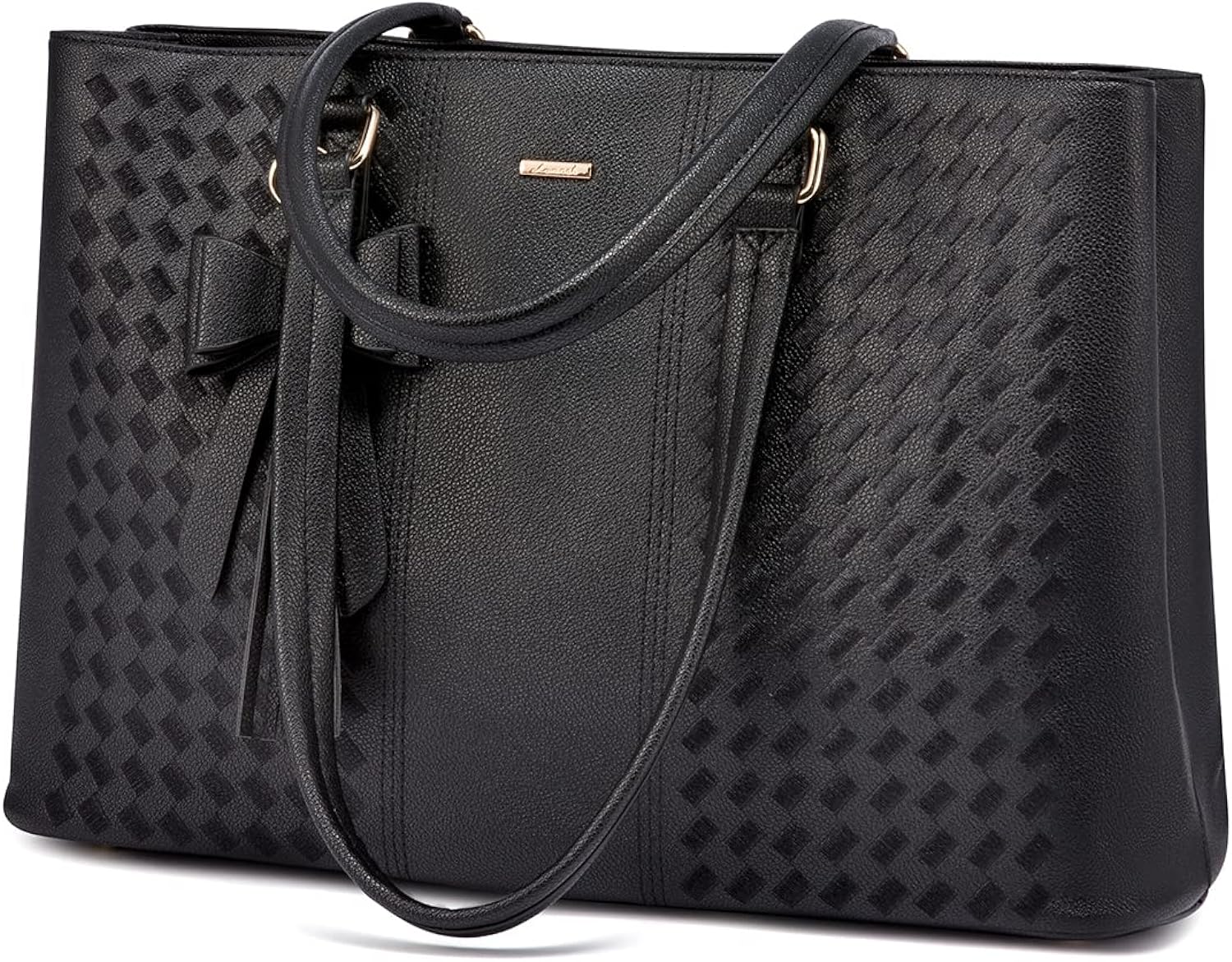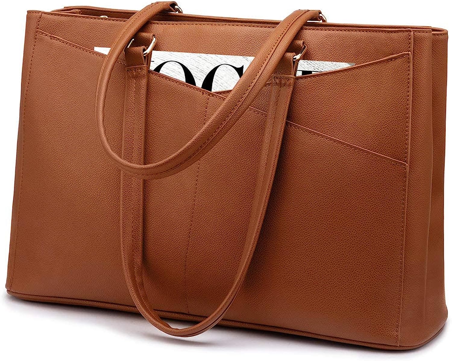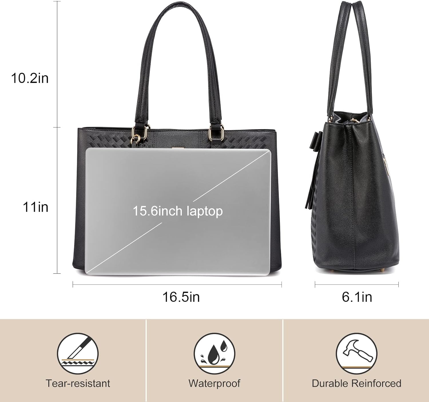 • ✓【Premium Durable Material Laptop Bag】This computer tote is crafted in durable, water-resistant, scratch-resistant PU leather and polyester lining. Top smooth metal zipper for easy opening. Metal feet base protects your bag from damage.