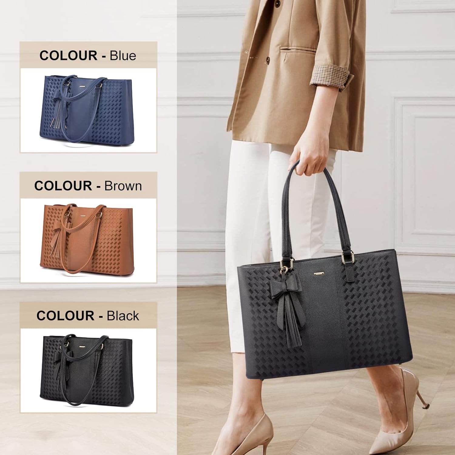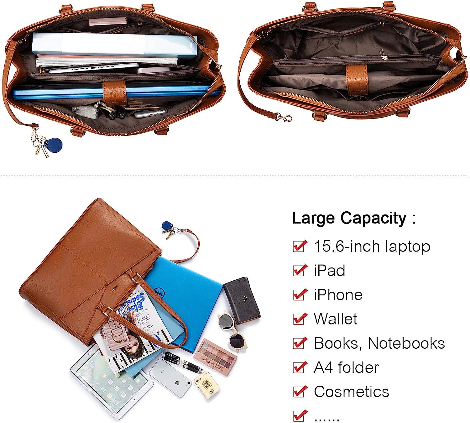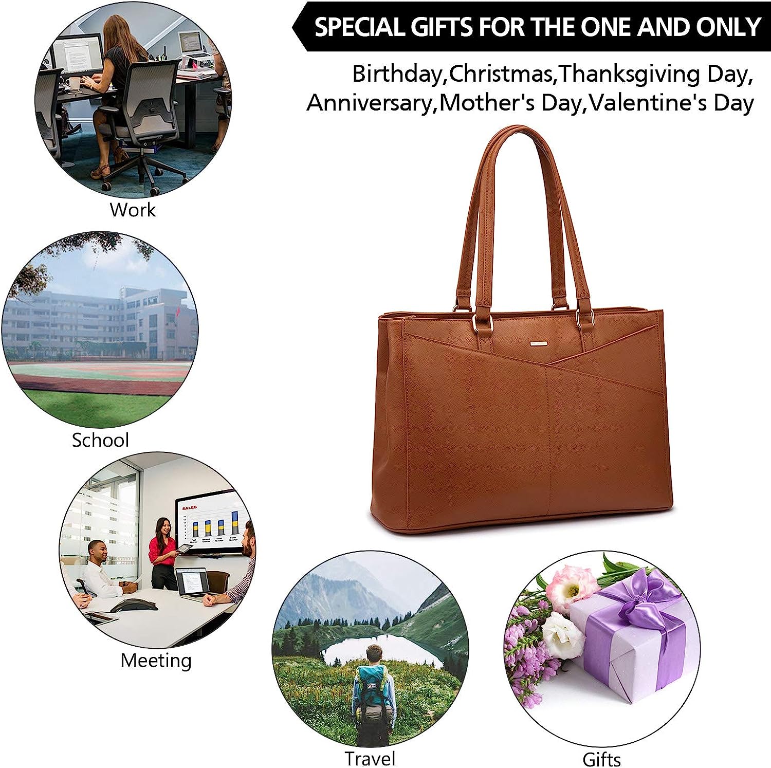 • ✓【Stylish and Lightweight】This leather tote can be your laptop computer bag, school bag, business work bag, It's perfect for work, business trip, meeting, college school, shopping or daily use. Awesome gift choice for girls and women on Birthday, Valentine's Day, Mother's Day, Christmas, Graduation.