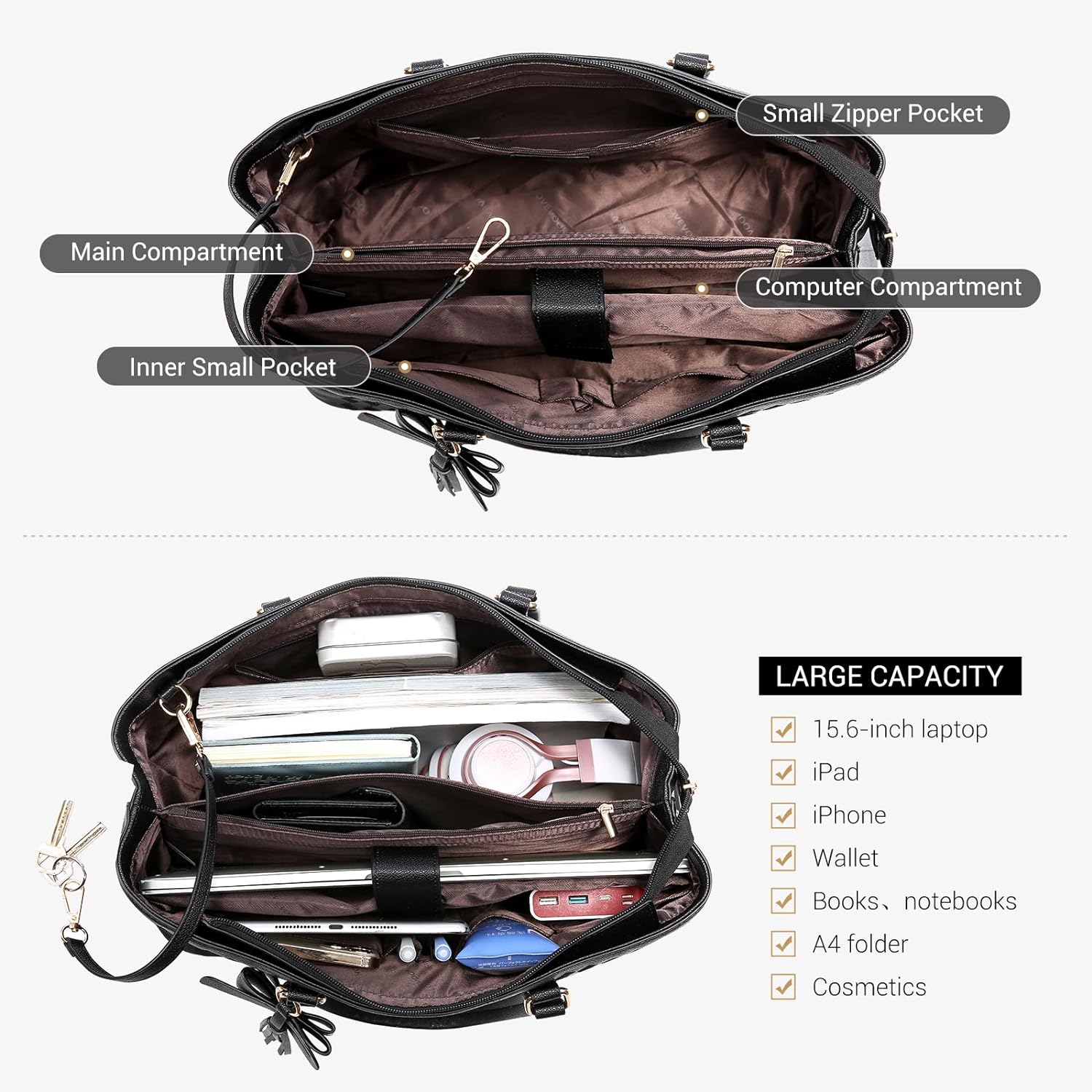 • ✓【Large Capacity Laptop Bag for Women】Spacious Fashion Laptop Bag designed specifically for women, Suitable for 15.6 inch and smaller Laptop. Thickened soft protective foam pad, velcro strap secure to fully protect your laptop and tablet. The size is perfect for your laptop and all the essential that you need throughout the day.